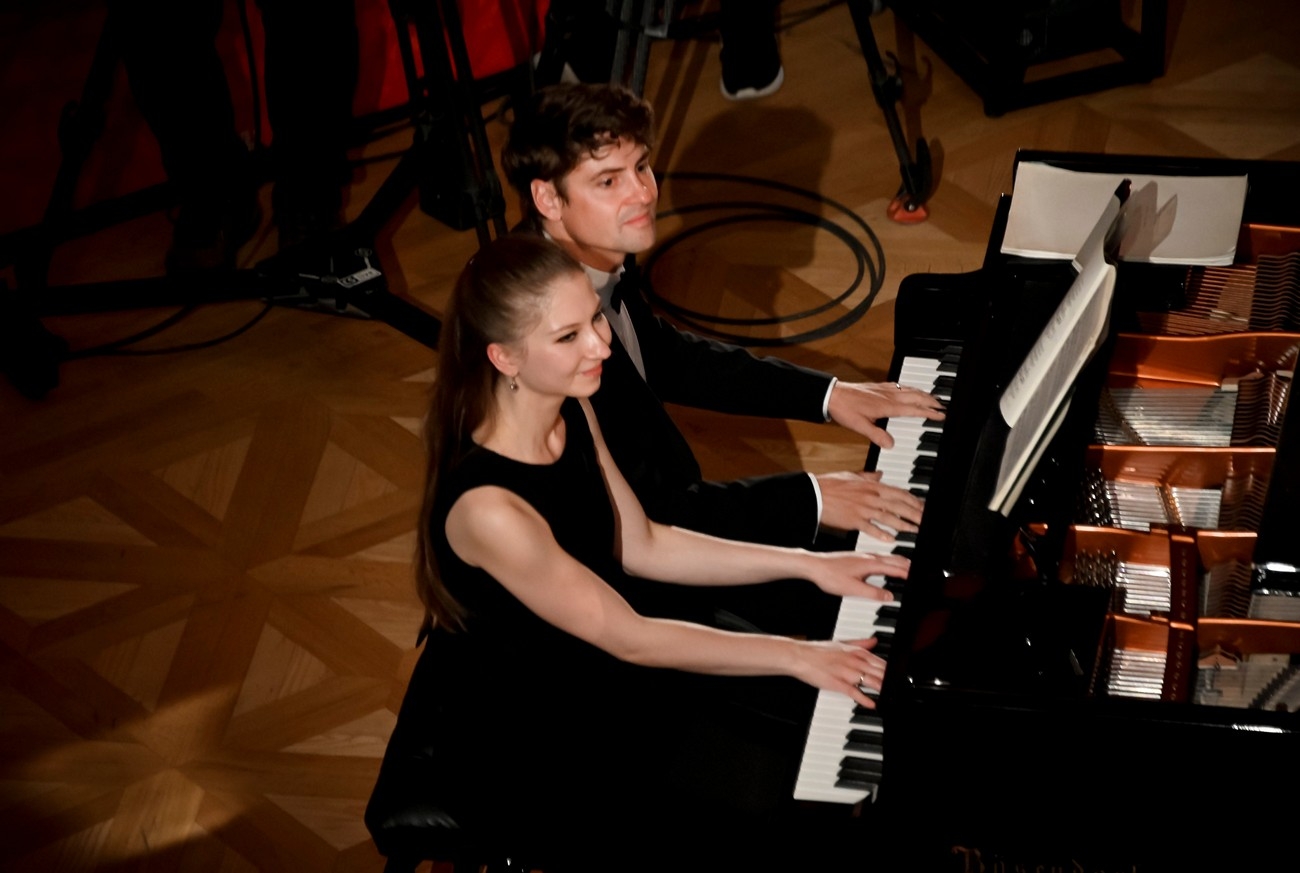 Koncert uzavíralo osmnáct krátkých Valčíkových písní lásky Johannesa Brahmse, opět v doprovodu čtyřručního klavíru. Klavíristé se spravedlivě podělili o své party, takže tentokrát prim hrála Darya Volkova. A mohli jsme vidět, že to není jen její kolega, kdo právě hranou hudbu prožívá tělem i duší. Oba hráči na sbormistra dokonale reagovali, opírali se do klaviatury a vraštili čela v bouřlivých částech, naopak se jemně mazlili s každým tónem a usmívali se v pasážích klidných. Ostatně, vídeňský sbor se v tomto repertoáru také cítil právem doma, kolikrát ani nepotřeboval gesto dirigenta, spontánně se hýbal jako jedno tělo směrem k první době a v obličejích jednotlivých zpěváků se odrážel význam zpívaných slov.