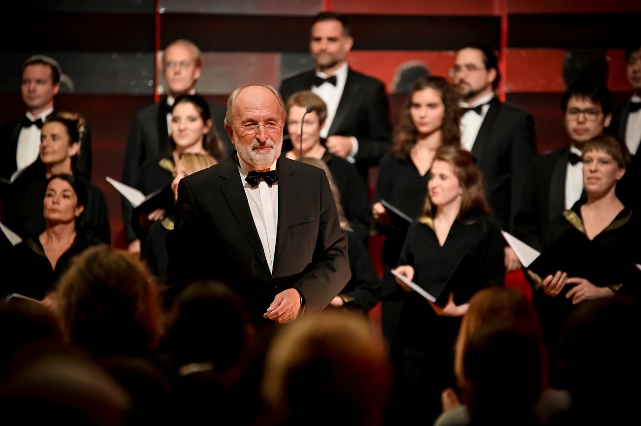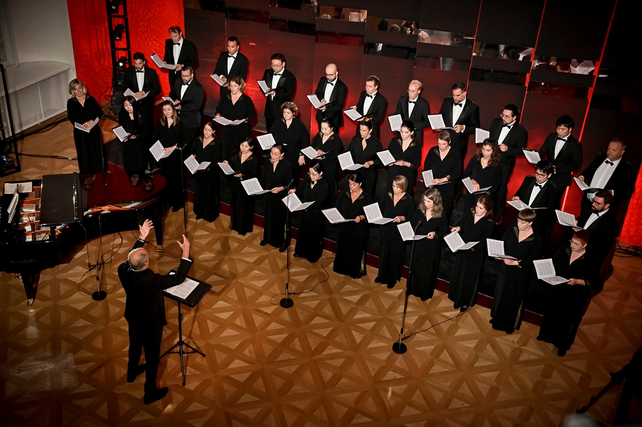 Z děl Arvo Pärta si jako první sbor vybral Nunc dimittis – naprosto magickou skladbu zhudebňující chvalozpěv proroka Simeona. V tuto chvíli jsem zpěvákům nezáviděla. Kvůli Pärtovu typickému kompozičnímu stylu skladbě dle mého názoru svědčí alespoň mírný dozvuk, zatímco Mozartův sál všechny hlasy až nekomfortně odhaloval. Patrně je to způsobené i tím, že skladbu důvěrně znám z pohledu sbormistra – působí na mě jako stojatá vodní hladina, po které jen sem tam přeběhne rozfoukaná vlnka. Tento večer, přestože technicky dokonale provedená, na mě ale přenesla spíš neklid.