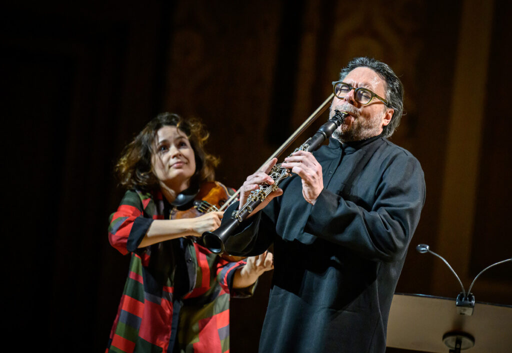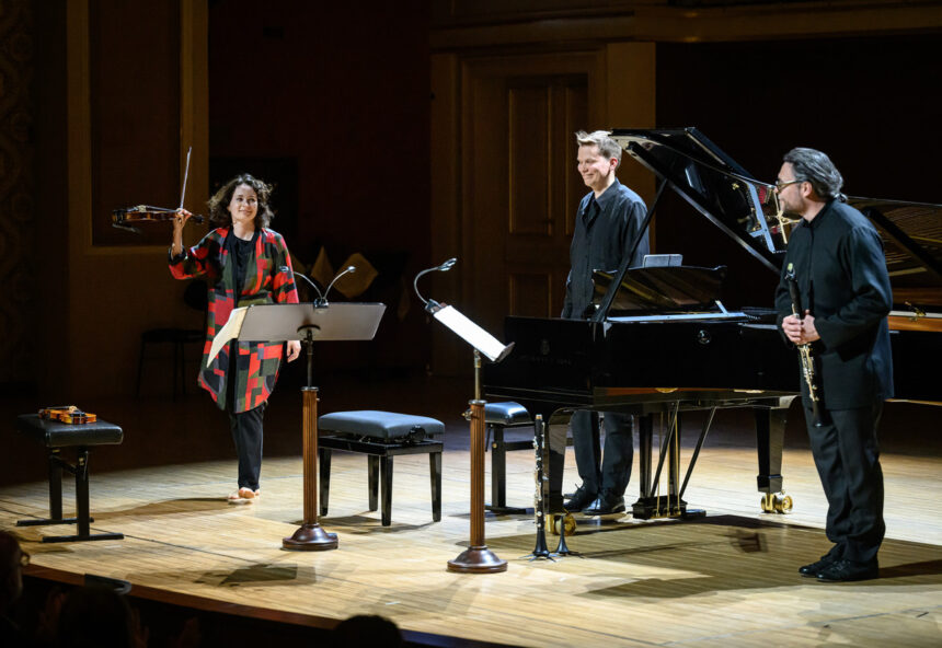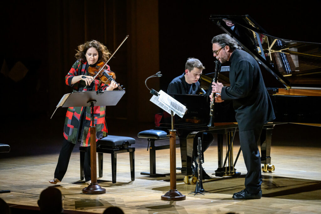 První polovinu inspirovanou jazzem a lidovou hudbou vyplnila suita ze Stravinského baletu Příběh vojáka, Milhaudovo Jeu pro housle a klarinet ze Suity, op. 157b a Bartókovy Kontrasty a spolu Patricií Kopatchinskou vystoupili klavírista Joonas Ahonen a klarinetista Reto Bieri, který měl zásadní podíl na úspěchu provedení. Zejména Milhaudova dvouminutová hříčka musela zaujmout nejen pro suverénní hudební podání, ale především pro, řekněme, pohybovou choreografii dvojice umělců. Svůj part oba naplnili významem, pod kterým si každý divák mohl představit to svoje. Tato „prskavka“ by skvěle sedla na závěr koncertního pořadu, tady tvořila spíše most mezi dvěma cyklickými díly, což je druhou funkční variantou.