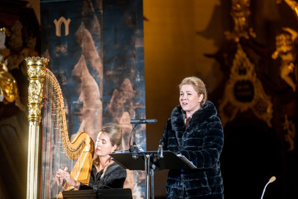 První tóny harfy další skladby přenesly publikum do pohádky: Kateřina Kněžíková mistrně provedla s Kateřinou Englichovou árii Měsíčku na nebi hlubokém z opery Rusalka Antonína Dvořáka. Sněhobílý, jasný hlas s krystalicky čistými výškami evokoval svit měsíce a smutek nešťastné Rusalky. Dvořákova hudba s impresionistickým nádechem stvořila další lístek. Perfektně uchopený a precizně odlišený písňový a operní projev byl skutečně hoden obdivu. Publikum odměnilo umělkyně za nádherný večer dlouhotrvajícím potleskem a ani se nechtělo rozloučit.