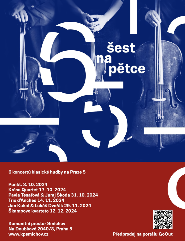 Koncertní cyklus nazvaný Šest na pětce pořádaný v Komunitním prostoru Smíchov, tedy v prostorách zrekonstruovaného kostela Českobratrské církve evangelické, pokračuje letos druhým ročníkem. Od 3. října do 12. prosince nabídne šestici koncertů, jejichž tematickým svorníkem bude Rok české hudby a osmdesáté výročí terezínských skladatelů.