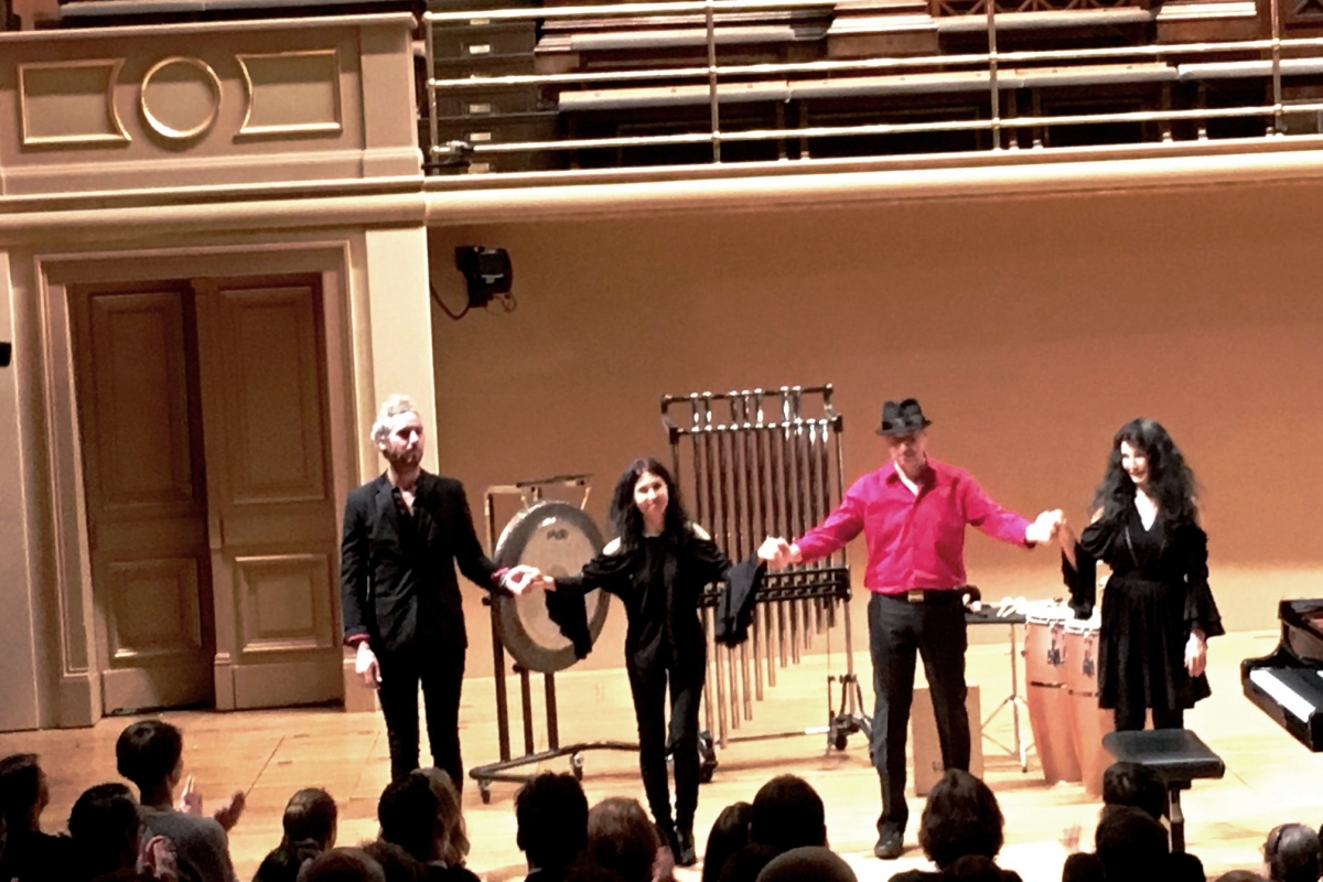 V druhé půli večera sesterské duo posílili dva perkusisté – multiinstrumentalista a skladatel Gonzalo Grau a Raphaël Séguinier. Společně zahráli Symfonické tance a písně z muzikálu West Side Story Leonarda Bernsteina takovým způsobem, že publikum aplaudovalo po jednotlivých částech a na konci vyskočilo ze sedadel. Plným právem. Irwin Kostal, dvorní Bernsteinův aranžér, napsal tuto sedmnáctidílnou suitu na žádost samotného Bernsteina přímo pro Katiu a Marielle Labèqueovy a je to jediná skladatelem autorizovaná upravená verze. Nelze se divit. Kostal vytvořil nesmírně barvitou skladbu-úpravu složenou z těch nejznámějších písní (Maria, America, Tonight, Somewhere…) a dalších hudebních čísel muzikálu. Zvuk dvou klavírů a rovnocenných perkusí byl tak barvitý, že dal zapomenout na orchestrální a zpívané verze. Klavíristky hrály snad s ještě větším nasazením než v první půlce, vášnivě i zádumčivě, láskyplně i s překypující energií. Není divu, že chytlavou – s tančícími, tleskajícími a bubnujícími Grauem a Séguinierem – Ameriku darovaly okouzleným pražským posluchačům jako přídavek.