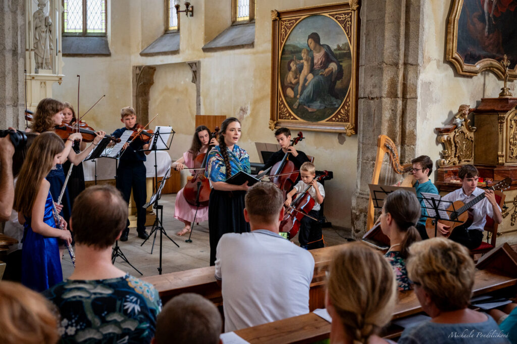 Cennou součástí projektu jsou výstavy, projekce a hlavně četné koncerty, a to nejen účinkujících kurzistů a jejich lektorů, ale i významných koncertních umělců. Letos to byli kytarista Pavel Steidl v kapli sv. Marka, dechové kvinteto Belfiato Quintet tamtéž, Jiří Stivín Quartet v kulturním domě. Renomované umělkyně, věnující se zejména interpretaci hudby období baroka – Edita Keglerová na cembalo, Julie Braná na barokní příčnou flétnu a zobcovou flétnu a Mélusine Srovnal na violu da gamba – rozezněly gotický prostor chrámu svatých Petra a Pavla. Celkem na festivalu zaznělo dvanáct koncertů. Závěrečné dva koncerty nabídly netrpělivě očekávaná vystoupení vybraných kurzistů. První z nich v gotickém původně špitálním kostelíku sv. Víta (který čeká na svoji opravu, po povodních 2002 byl zatopen), byl posluchači zcela zaplněn. Většinu obecenstva tvořili kurzisté, jejich příbuzní a lektoři, žádostiví si poslechnout výsledky společné práce. Koncert, i když trval přes devadesát minut bez přestávky, kromě hostující šikovné flétnisky byl postaven na smyčcích (housle a violoncella) za spolupráce malého ansámbu, který se secvičoval v průběhu kurzů s uměleckou vedoucí Věrou Sadílkovou. Především však obdiv patřil klavíristkám Silvii Ježkové a Štěpánce Rohlíčkové, které měly k dispozici elektrický klavír a odehrát většinu koncertu s výhradně romantickým repertoárem velmi náročné úrovně nebylo snadné. Taktéž sólisté se museli zvukově a souhrou přizpůsobit. Naštěstí akustika ten večer díky zaplněném prostoru příjemně spolupracovala, chrámový prostor bývá občas v tomto ohledu záludný. Do příjemného chládku spolu s výbornými výkony se občas „zatoulal“ otevřenými vraty milý zpěv kosa, který nikterak nenarušil atmosféru večera.