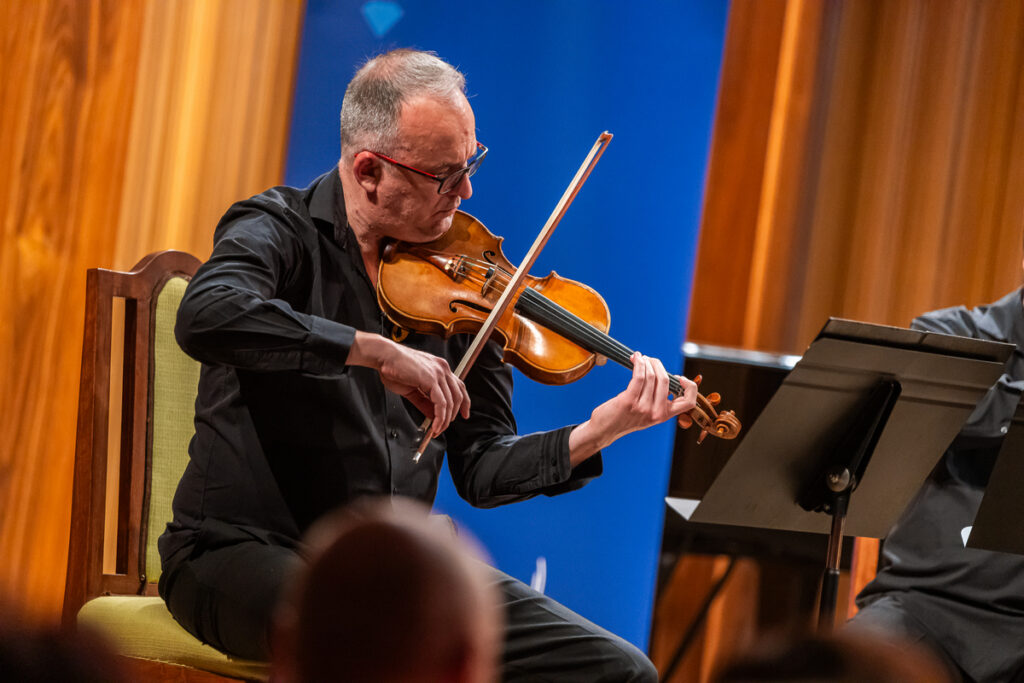 Od dalšího díla se již u prvního pultu až do konce koncertu usadil Václav Dvořák. Interpretace Smyčcového kvartetu op. 3 F dur Josefa Myslivečka byla velmi přesvědčivá. Soubor mimochodem jako první toto a několik dalších děl, včetně dvou kvintetů s hobojem autora, působícího převážnou část svého života v emigraci, natočil v r. 2020 pro Supraphon. Zde je nutno ale podotknout, že uskupení v této době hrálo v mírně jiném složení, v jakém si jej pamatuji z jiných živých koncertů, a to s hráčem druhých houslí Janem Zrostlíkem. Nahrávku jsem si před živým provedením doma poslechl, a i v jiném obsazení zaznělo dílo na pódiu skvěle a bylo mi největším dramaturgickým i interpretačním přínosem večera. Hráči si navzájem dávali dynamický prostor, Vojtěch Urban umí své violoncello nechat „zpívat“ i ve velmi slabých dynamikách. Závěrečná, třetí věta díla skvěle „zařezávala“, obsahovala logickou agogiku a sytý tón vůdčích myšlenek. Bylo slyšet, že soubor má toto Myslivečkovo dílo opravdu zažité. Svěží Myslivečkova hudba plná melodických ozdob, by stála jistě za větší zájem dalších souborů. Protože Mysliveček napsal smyčcových kvartetů ještě mnohem více, lze se určitě ještě těšit na pokračování úspěšného nahrávacího projektu.
