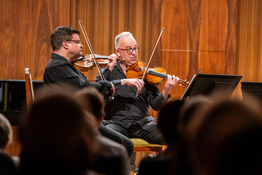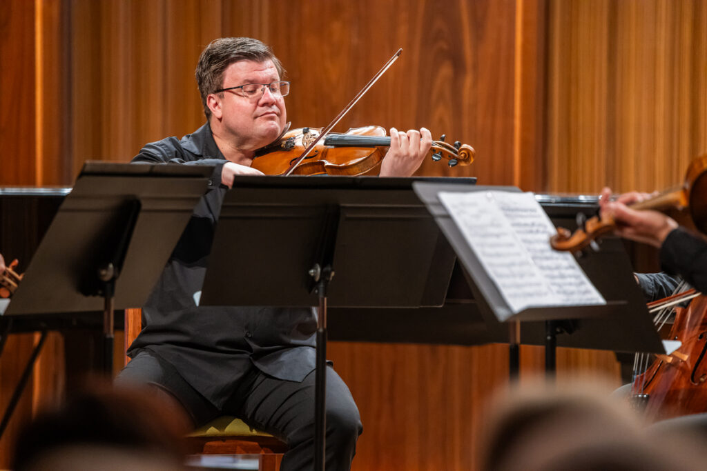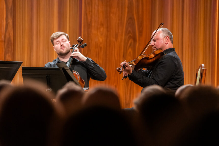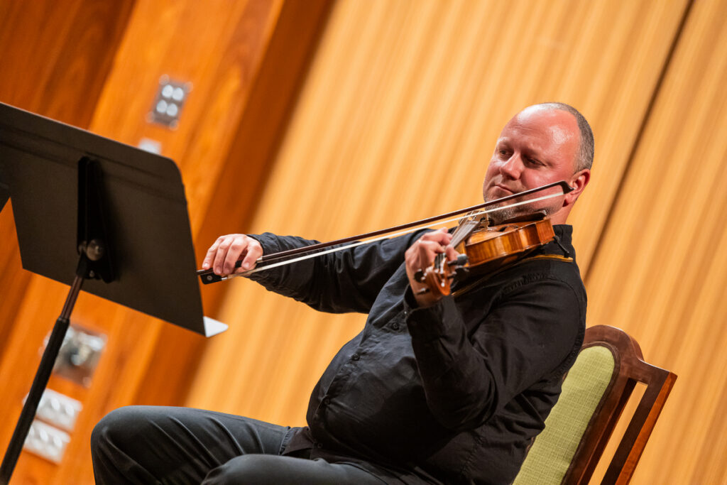 Od dalšího díla se již u prvního pultu až do konce koncertu usadil Václav Dvořák. Interpretace Smyčcového kvartetu op. 3 F dur Josefa Myslivečka byla velmi přesvědčivá. Soubor mimochodem jako první toto a několik dalších děl, včetně dvou kvintetů s hobojem autora, působícího převážnou část svého života v emigraci, natočil v r. 2020 pro Supraphon. Zde je nutno ale podotknout, že uskupení v této době hrálo v mírně jiném složení, v jakém si jej pamatuji z jiných živých koncertů, a to s hráčem druhých houslí Janem Zrostlíkem. Nahrávku jsem si před živým provedením doma poslechl, a i v jiném obsazení zaznělo dílo na pódiu skvěle a bylo mi největším dramaturgickým i interpretačním přínosem večera. Hráči si navzájem dávali dynamický prostor, Vojtěch Urban umí své violoncello nechat „zpívat“ i ve velmi slabých dynamikách. Závěrečná, třetí věta díla skvěle „zařezávala“, obsahovala logickou agogiku a sytý tón vůdčích myšlenek. Bylo slyšet, že soubor má toto Myslivečkovo dílo opravdu zažité. Svěží Myslivečkova hudba plná melodických ozdob, by stála jistě za větší zájem dalších souborů. Protože Mysliveček napsal smyčcových kvartetů ještě mnohem více, lze se určitě ještě těšit na pokračování úspěšného nahrávacího projektu.