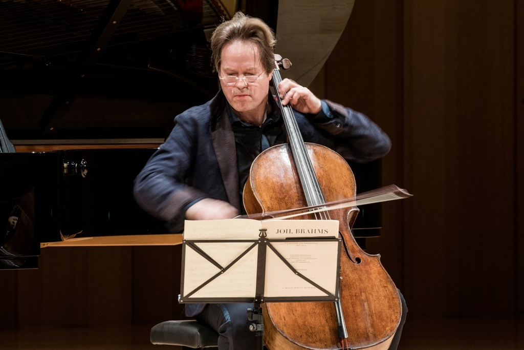 Jako první usedli k nástrojům Jan Vogler a Martin Stadtfeld. Voglerovo violoncello znělo v Brahmsově sonátě od prvních taktů naléhavě, lkavě, s velkými emocemi, které podpořil klavír Martina Stadtfelda. První věta, v níž se Brahms vyznává ze své lásky ke Claře Schumannové, je neobyčejně zpěvná, lyrická a pro dobrého violoncellistu je požehnáním. Jan Vogler naplno tlumočil publiku veškerou vášeň a city, jež skladatel do této skladby vkomponoval. Pozornost si zasloužil i Martin Stadtfeld – byl partnerem v dialogu obou nástrojů, místy dominoval, místy jen skromně doprovázel, to vše bez ambice upoutat na sebe pozornost, přesto byl nepřeslechnutelný. Fuga ve třetí větě vyšla oběma interpretům výtečně, oba byli rytmicky precizní a vynikl jak krásný Voglerův tón – měkký, hebký, sametový, tak Stadtfeldův úhoz – křehký, perlivý, i v nejjemnějších pianissimech a tempu vyhraný do poslední noty.