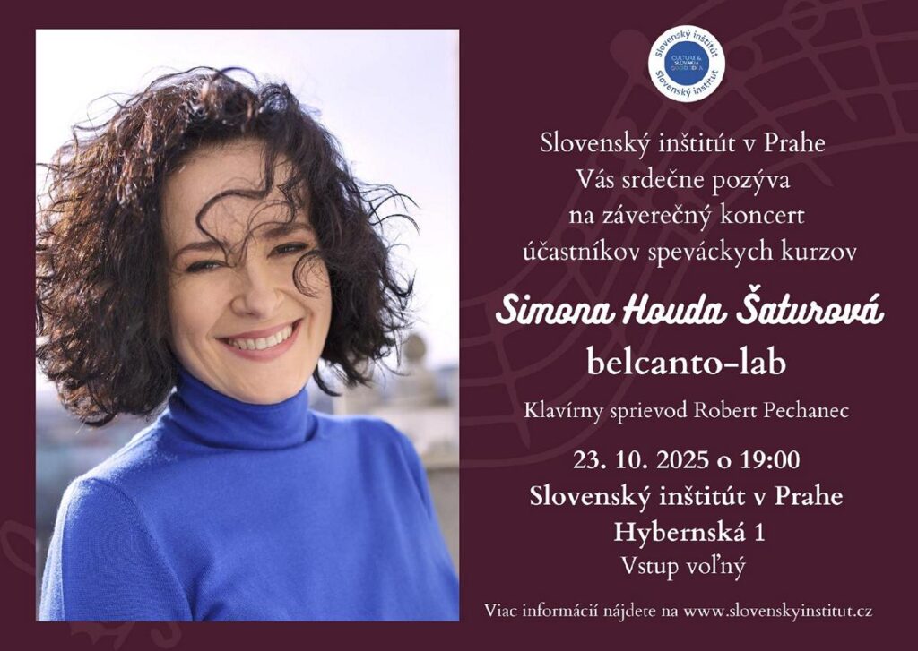 Slovenský institut v Praze bude ve čtvrtek 23. října od devatenácti hodin hostit závěrečný koncert čtvrtého ročníku pěveckých kurzů BelcantoLab, které se pod vedením sopranistky Simony Houda Šaturové konají od 19. do 23. října. Na koncertě v prostorách institutu v Hybernské ulici se představí mladí pěvci a pěvkyně, účastníci letošního ročníku, kteří publiku nabídnou výběr z klasického operního repertoáru.