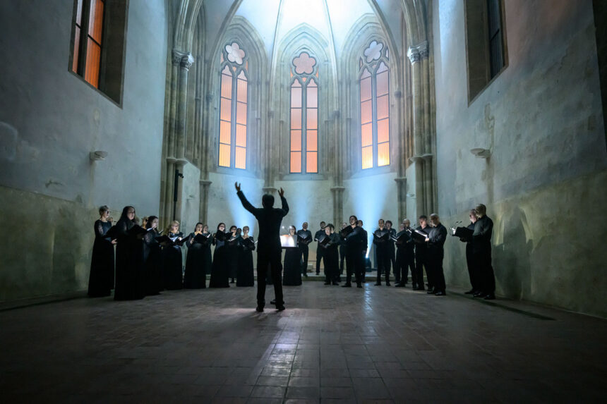 Režisér Tomáš Ondřej Pilař je známý pro barevnou imaginaci svých operních představení, často a rád pracuje se symboly. Středeční večerní slavnost v prostorách Anežského kláštera nebyla výjimkou. Pro svou spolupráci s Pražským filharmonickým sborem si zvolil postní čas, kterému odpovídalo i zaměření jednotlivých skladeb, které sbor interpretoval. Díla samotná však neměla být hlavním atributem večera, diváci nedostali klasický informační program a názvy děl a jejich autory vím jen proto, že jsem se během hodinky strávené v Anežském klášteře všetečně podíval na porůznu rozmístěné stojánky dirigenta Lukáše Kozubíka…