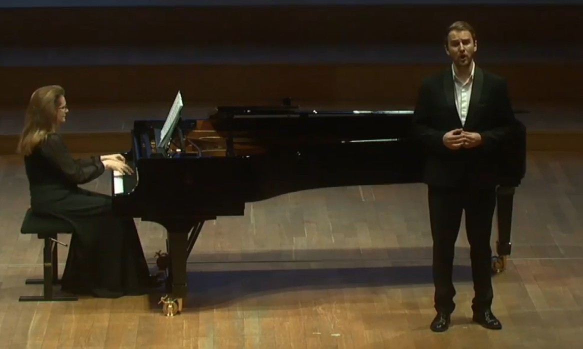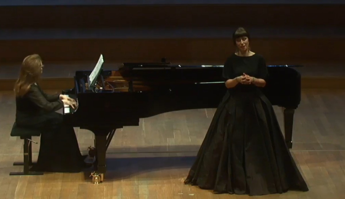 Online podujatie otvorila Katarína Porubanová s výberom z Wesendonck-Lieder Richarda Wagnera. Zazneli tri z piatich piesní: Träume, Stehe still! a Schmerzen. Online prenos má svoje limity: pri speve toho môže naozaj veľa skresliť. Čo však ostalo zjavné aj cez reproduktor bola dobrá zrozumiteľnosť speváčkinho prejavu a pevný, kovovo znejúci hlas, ktorý sa k Wagnerovým piesňam dobre hodil. Viac ma však Porubanová zaujala vo výbere z cyklu Stratené slová (svety) – štyri piesne na básne Emily Dickinsonovej od Jevgeniho Iršaja. V piesňach pôsobila uvoľnene a prirodzene vystihovala rôzne výrazové roviny, ktoré autor aj na základe literárnej predlohy navrhuje.