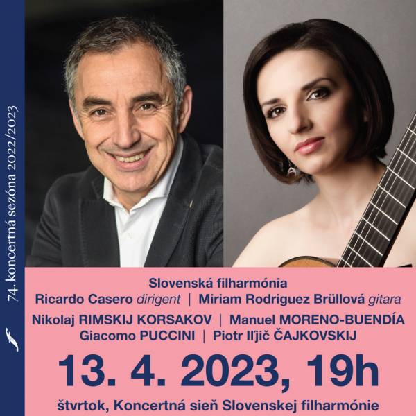 Slovenská filharmonie vystoupí pod taktovkou šéfdirigenta a uměleckého ředitele Orquesta Reino de Aragón, rodáka z Valencie Ricarda Casera. Spolu s nimi se ve španělských rytmech představí slovenská kytaristka Miriam Rodriguez Brüllová. Koncert se bude konat ve čtvrtek 13. dubna v Koncertní síni SF od devatenácti hodin.