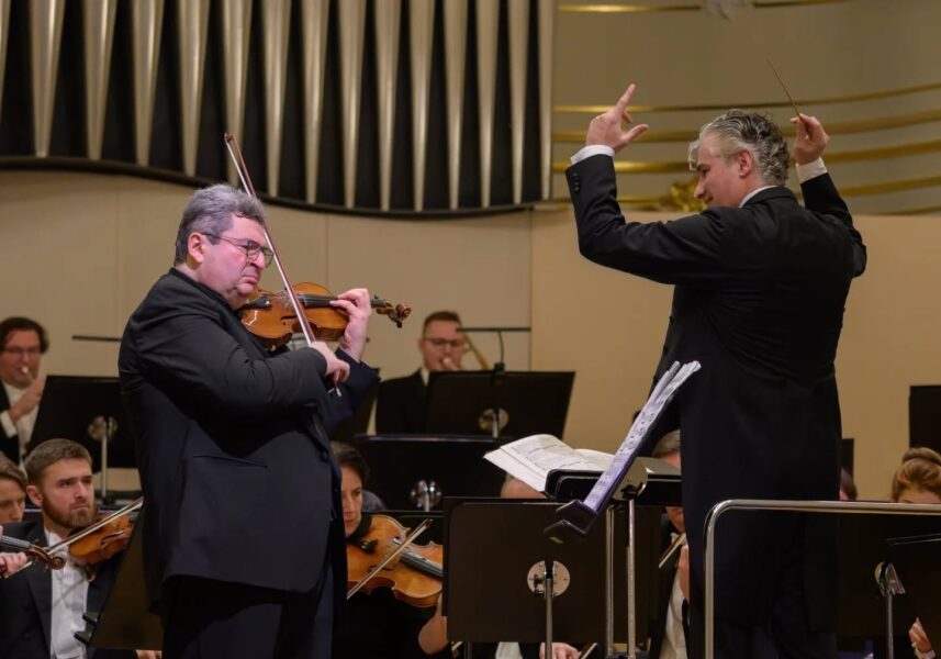 „Dirigent Rémy Ballot a huslista Tibor Kováč po prvýkrát účinkovali v Slovenskej filharmónii.“