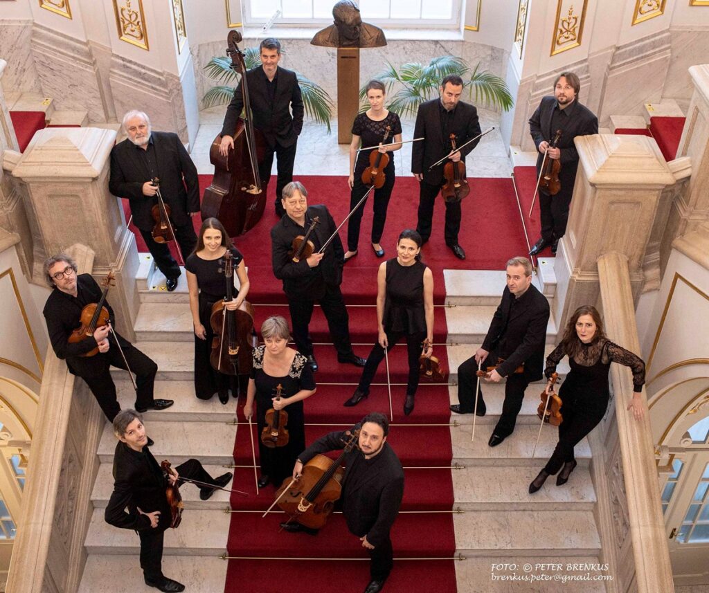 Dílo česko-rakouského komponisty Heinricha Ignaze Franze Bibera se rozezní na úvod večera a půjde o autorovu Battaglii à 10. Dále už jsou na repertoáru historicky průřezově a reprezentativně s ohledem k charakteristikám české hudby díla českých skladatelů. Druhý na programu tak je Jan Václav Stamic a jeho Symfonie č. 3 B dur „Mannheimská“, Antonína Dvořáka přiblíží Smyčcový kvartet č. 5 f moll, op. 9, jeho druhá věta Andante con moto quasi allegretto a také Kvartetní věta F dur, B120. Tvůrce známé operety Polská krev Oskar Nedbal bude představen dílem Valse triste. Bohuslava Martinů připomene jeho Serenáda č. 2, H. 216, Erwina Schulhoffa pak pátá z Pěti skladeb pro smyčcové kvarteto s označením Alla czecca a třetí věta Allegro giocoso alla slovacca ze Smyčcového kvartetu č. 1. Program se završí možná překvapivě Třemi tanci ve starém stylu soudobého komponisty, dirigenta a hudebního režiséra Jaroslava Krčka.