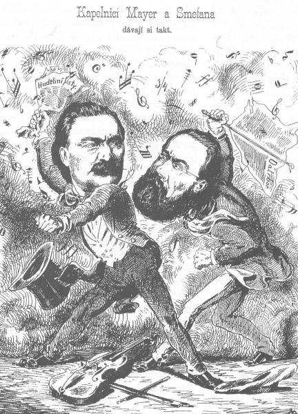 Bedřich Smetana, se zkušenostmi z ciziny, vnímal pražské prostředí, zejména koncertní a operní život, jako zaostalé a povrchní. Vysvětloval, přesvědčoval, bojoval, vyzdvihoval potřebu podpory a uvádění domácího umění. Slovem tak činil v Národních listech, kde se stal referentem v hudební rubrice. Stejně zásadně a podstatně se projevoval jako skladatel, ale ruku v ruce s tím požadoval také uměleckým duchem prolnuté provádění děl… Opakovaným poukazováním na nutnost nespokojit se v úsilí o zřízení prvního českého stálého profesionálního divadla s Prozatímním divadlem popudil proti sobě vlivného Jana Ladislava Riegera, který si na vybudování této scény osobně velmi zakládal; nebojácnými kritickými postřehy na adresu dramaturgie a úrovně operního provozu si znepřátelil nepříliš schopného kapelníka Jana Nepomuka Maýra. Toho podporoval právě Rieger, a tak není divu, že úsilí získat v pražském hudebním světě významný a vlivný post se Smetanovi naplnilo až v roce 1866.