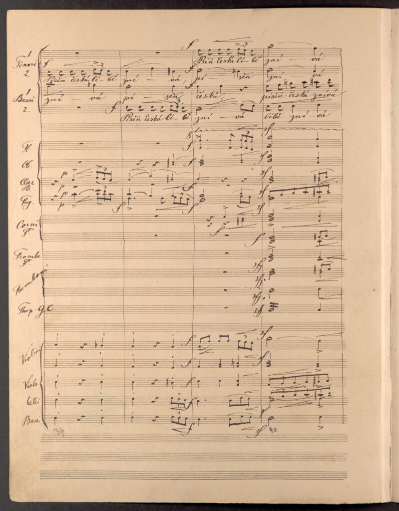 Dílo již při zběžném pohledu trpí problematickým hudebním zápisem, díky němuž je provedení místy zvukově velmi nevýhodné, popřípadě zcela nemožné, protože přesahuje možnosti mužských hlasů – například tenory Smetana píše tak, jak znějí, a nikoliv o oktávu výše, jak je obvyklé, a basy zase naopak notuje příliš vysoko. Notový zápis tak více než mužskému sboru odpovídá sboru smíšenému, který jej také poprvé provedl až ve 20. století. Sám Smetana skladbu odložil a vrátil se k ní až o osm let později, tedy v roce 1868, kdy text znovu zhudebnil pro smíšený sbor s doprovodem klavíru jako Českou píseň. Do třetice se ke skladbě vrátil ještě v roce 1878, kdy ji na žádost dirigenta Adolfa Čecha opatřil vlastním orchestrálním doprovodem, který dokončil jen dva dny po premiéře opery Tajemství.