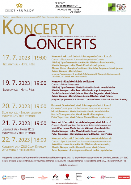 Součástí Letních interpretační kurzů v Českém Krumlově je patero koncertů