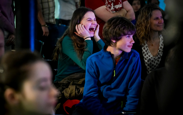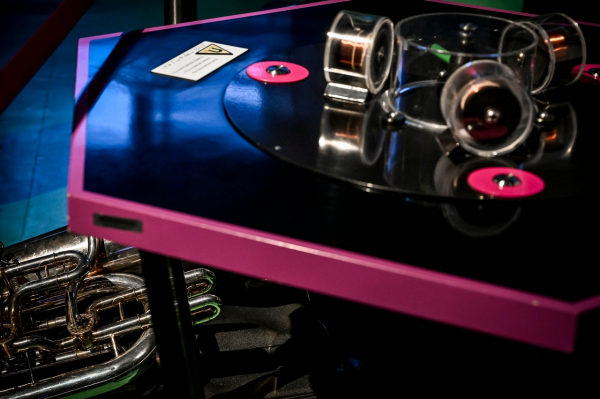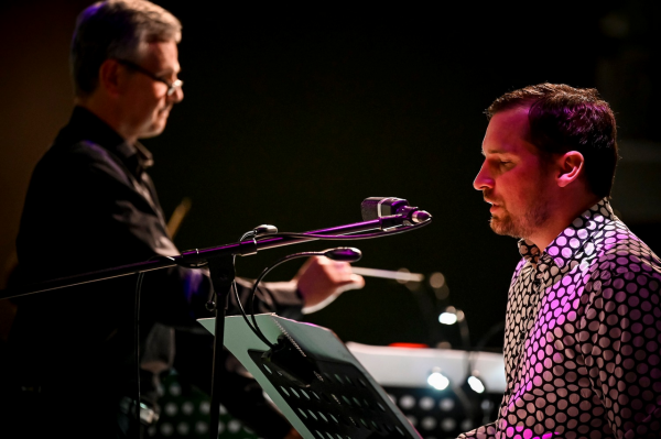 „Tři, dva, jedna, včil,“ odstartoval dirigent Pavel Šnajdr pondělní koncert a jeho první skladbu Pendulum Music od amerického minimalisty Steva Reicha z roku 1968. Na stojan byly na kabelech zavěšeny čtyři mikrofony, které se následně zapnuly, spustily a jako kyvadlo se houpaly nad reproduktory, čímž vznikalo několik různých tónů, které se vzájemně překrývaly. Postupné zpomalování rozhoupaných mikrofonů mělo za následek deformaci zvuku. Když pak byl pohyb mikrofonů velmi pomalý, několik z nich utichlo a zněl pouze ten s nejhlubším tónem. Interpretace je pravděpodobně z části závislá na člověku, který techniku ovládá. Pochopit však fungování elektronické hudby, pro mne bylo vždy oříškem. Snad mi to tedy odborníci odpustí. Soustředila jsem se proto spíše na zvukový vjem, který v posluchačích mohla skladba zanechat. S trochou nadsázky mi zvuky připomínaly řev, vycházející z pavilonu ptáků v zoologické zahradě. Tato ryze elektronická skladba, trvající přibližně osm minut, však svou inovační myšlenkou do prostředí brněnského vědeckého parku VIDA! perfektně zapadla, přičemž nevšedně zahájila přehlídku současné kompoziční tvorby.