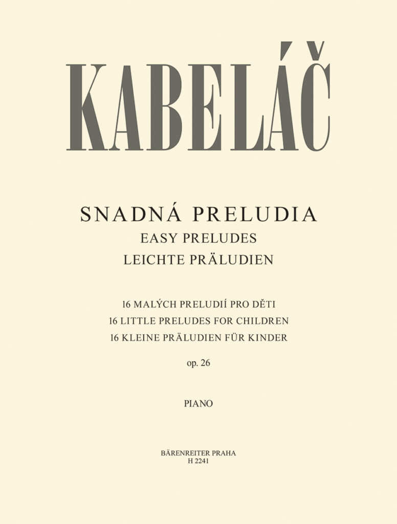 16 mistrovsky napsaných skladbiček pro děti, které s hrou na klavír teprve začínají. Jednotlivá preludia jsou řazena s postupně vzrůstající náročností a cyklus je přímo ideální pro pedagogické účely. Snadná preludia vznikla koncem roku 1954 a Kabeláč je věnoval „Své dcerušce“. Více informací najdete na www.nasenoty.cz/snadna-preludia-op-26