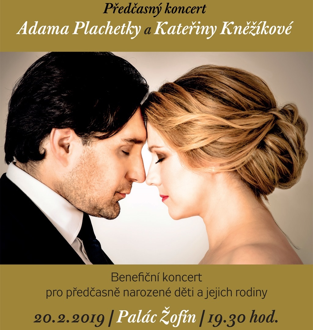 Smetana, Dvořák a určitě i nějaké překvapení, to je program už druhého benefičního koncertu Adama Plachetky a Kateřiny Kněžíkové ve prospěch Nadačního fondu pro předčasně narozené děti a jejich rodiny. Koná se 20. února v Praze na Žofíně a odvíjet se bude od repertoáru jejich společného alba. Hrát bude Symfonický orchestr Českého rozhlasu a řídit David Švec. Všichni vystoupí bez nároku na honorář.