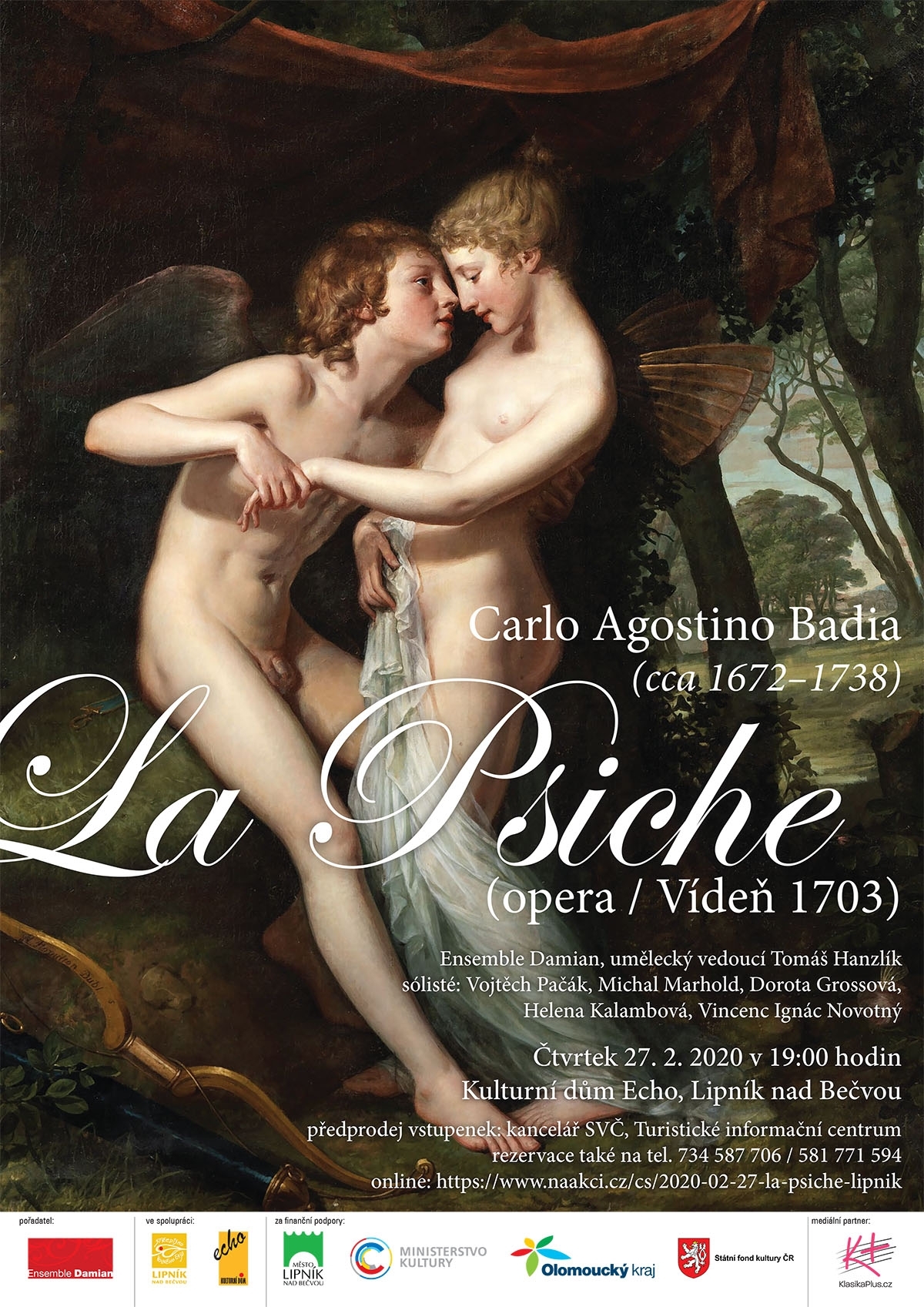 Antický motiv hudebně zpracoval italský skladatel Carlo Agostino Badia a teď se ho ujal soubor Ensemble Damian a jeho umělecký vedoucí Tomáš Hanzlík. V titulních úlohách se představí Helena Kalambová jako Psiche a Vojtěch Pačák jako Amor, dále účinkují Michal Marhold jako Giove, Dorota Grossová v úloze Venere a Vincenc Ignác Novotný coby Mercurio. Premiéra se koná 27. února v Lipníku nad Bečvou, v Kulturním domě Echo.