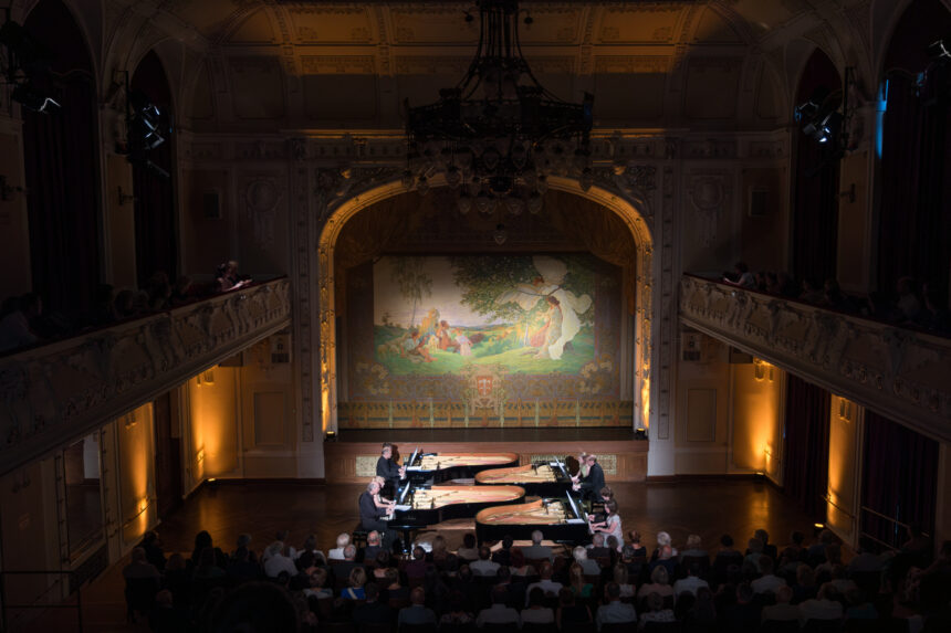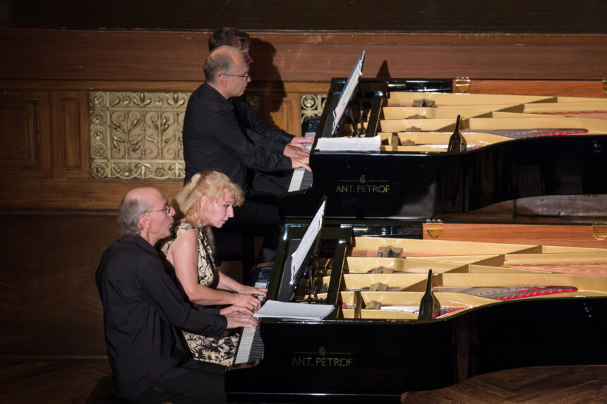 Šlo bezesporu o šťastný nápad oslavit Rok české hudby a dvousté výročí narození Bedřicha Smetany v jeho rodišti i tímto způsobem. Litomyšl letos rozezněly tóny všech skladatelových oper, na pořad se dostala jeho nejvýznamnější symfonická díla a dramaturgie festivalu ve spolupráci s interprety sáhla i do autorovy komorní tvorby. Pondělní koncert zaměřený na Smetanovy skladby pro dva a čtyři klavíry na čtyři, osm nebo šestnáct rukou byl výjimečný hned v několika ohledech a byť jeho celková délka přesáhla pouhou hodinku, lze jej označit za velkolepý. Se čtyřmi klavíry na pódiu se nesetkáváme často, oceňme firmu Petrof za vstřícnost a vzornou přípravu nástrojů. A když se pak člověk zaposlouchá, jak si s nimi pohrávají hned čtyři mistři oboru, následovaní anebo propojení se čtyřmi mladými interprety, již mají více než nakročeno k budoucí úspěšné kariéře, nezbude mu, než sledovat vše s tichým obdivem a úžasem.