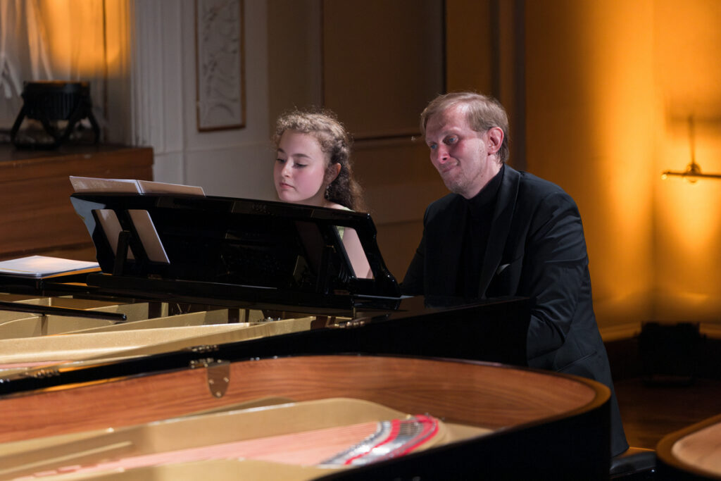 Nejprve se představili zralí hráči. Sonátová věta e moll pro dva klavíry na osm rukou z roku 1849 patří sice ke skladbám, které autor zkomponoval pro vystoupení žáků své hudební školy, technicky je však velmi náročná a vyžaduje velkou dávku zkušenosti. Ivo Kahánek, Martin Kasík, Igor Ardašev a Renata Lichnovská mají svá učednická léta již dlouhou řádku let za sebou, možná si na ně ale rádi zavzpomínali. Do společné hry se pustili s viditelnou chutí a nadšením. Jejich strhující výkon doložil, že Smetana rozhodně musel být náročným učitelem, vyrovnat se se všemi finesami skladby určitě nebylo jednoduché tehdy a není ani nyní. Jako typickou kompozici určenou žákům bychom naopak mohli označit Rondo C dur pro mládež pro dva klavíry na osm rukou napsané v roce 1850. Jeho provedení si v Litomyšli vzali za své Nora Lubbadová, Klára Gibišová, Denis Stefanov a Jan Schulmeister. Pravidelní návštěvníci koncertů ta jména, nebo alespoň některá z nich, určitě znají, jde sice o žáky konzervatoří (Denis Stefanov studuje v Praze, Jan Schulmeister v Kroměříži) či základních uměleckých škol (obě mladé dámy), ale všichni již mají „k dobru“ řadu ocenění z nejrůznějších soutěží, jimiž dávají svůj zřejmý talent najevo. I proto pro ně Smetanovo Rondo nepředstavovalo těžký úkol, coby „rozvičení se“ ho zvládli s úsměvy a lehce, v tempově dokonalé souhře.