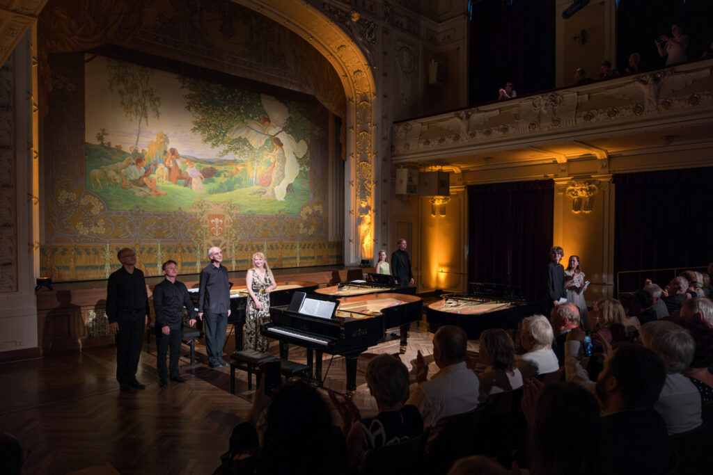 Večer gradoval. Předehra k opeře Prodaná nevěsta v úpravě pro čtyři klavíry na osm rukou (autorem aranžmá je německý klavírista a pedagog Marcus Kretzer) představuje vrcholně virtuózní úkol, k němuž byli vyzváni z okteta interpretů ti věkem starší. Nezaváhali a přivedli publikum k varu. To možná nejlepší ovšem čekalo publikum na samotný závěr. Scherzo z Triumfální symfonie E dur, op. 6 v úpravě pro čtyři klavíry na šestnáct rukou z roku 1856 opět přivedlo k nástrojům ostřílené hráče i jejich mladé kolegy, o nichž určitě ještě hodně uslyšíme. Podmanivost důvěrně známé skladby zůstala zachována, při pozorném poslechu mohly vyniknout prvky, jež lze v původní orchestrální verzi přehlédnout. A na tvářích všech přítomných osobností u klavírů se opět rozhostily stoprocentní koncentrace a radost ze vzájemné spolupráce.