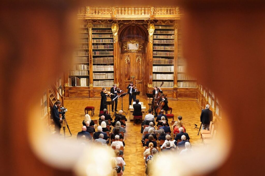 „Publikum přivítal strahovský opat Daniel Peter Janáček O. Praem s připomínkou, že kultura, vzdělanost a umění vždy naplňovaly život řádu premonstrátů a Strahova.“