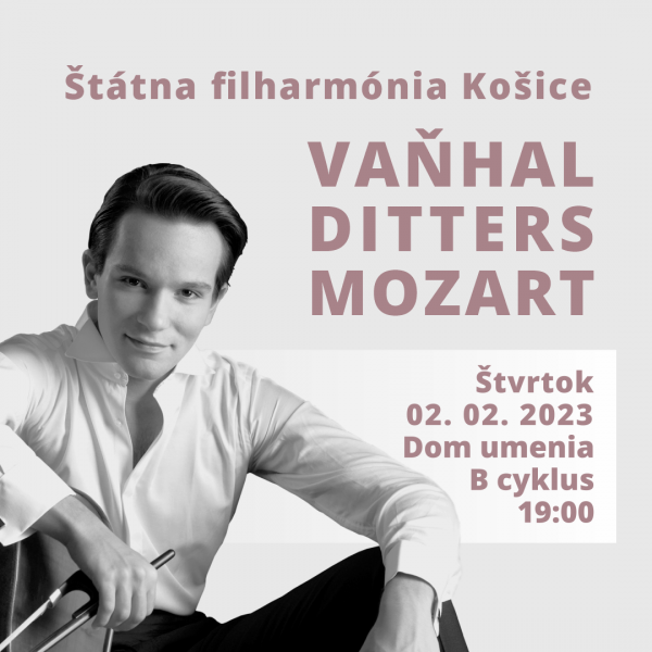 Státní filharmonie Košice pod taktovkou odborníka na historicky poučenou interpretaci Vojtěcha Spurného vystoupí v Domě umění ve čtvrtek 2. února od sedmé hodiny večerní. Na programu budou Mozartova Symfonie C dur Jupiter, Vaňhalova Symfonie A dur a Dittersův Druhý kontrabasový koncert Es dur, ve kterém se coby sólista představí Indi Stivín. Veřejná generální zkouška je na pořadu v deset hodin dopoledne a hodinu před koncertem se bude konat setkání s lektorem dramaturgie Petrem Katinou a hosty v Malém sále.