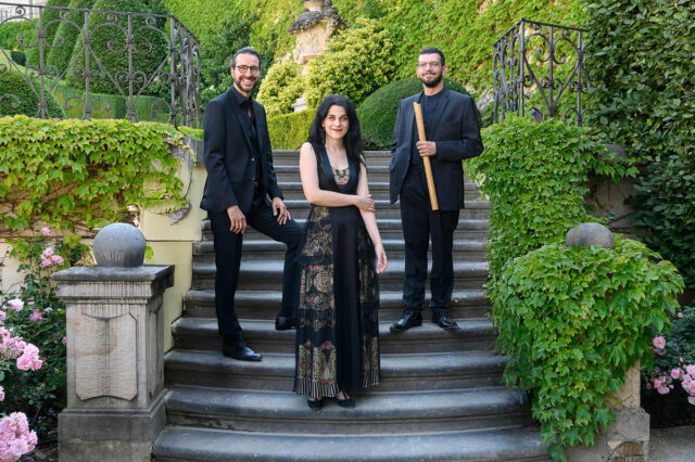 „Kiya Tabassian hraje na třístrunný setar, Didem Başar na kanun a Neva Özgen na kemenče.“