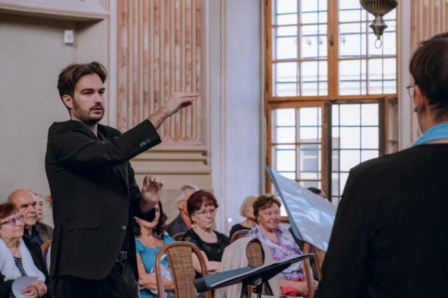 „Slovenský dirigent Eduard Kostelník tak šťastně a úspěšně ukončil svůj absolventský výkon na Hudební fakultě JAMU.“