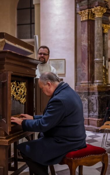 „Inaugurační koncert zahráli na troje varhany Vladimír Roubal, Jakub Janšta a Christian M. Pšenička.“