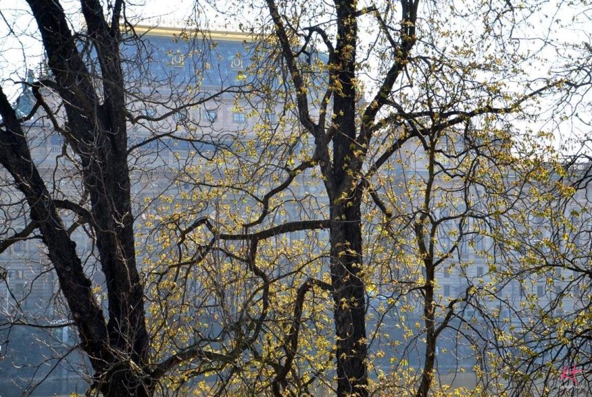 „Je tu plno lidí, řada jich přišla kvůli divadlu, někteří jsou ale na ostrově uprostřed blyštivé Vltavy na procházce nebo jen tak posedávají na břehu.“