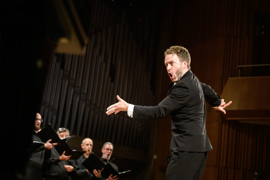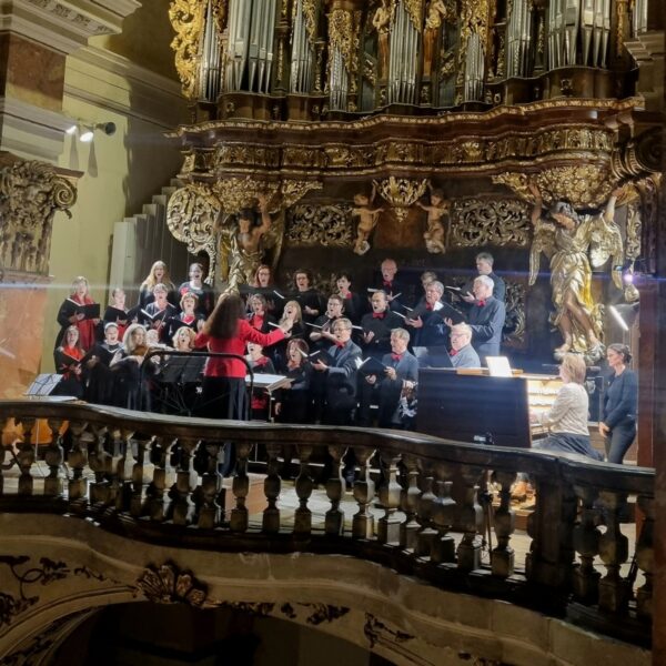 „Bohatý program obsáhl období od 9. století po současnost za spoluúčinkování zpěváků místní scholy.“