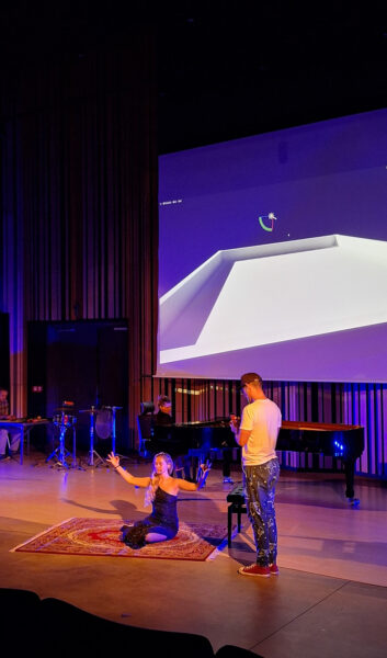 Co znamená být spolu – a přitom odděleně? Tuto otázku a mnoho dalších nechal vibrovat v prostorách Koncertního sálu Fakulty umění Ostravské univerzity multimediální projekt Leaving Room dne 30. října v rámci 51. ročníku Hudební současnosti. Autoři a zároveň interpreti Dimitris Andrikopoulos, Hana Hána, Ivo Medek, Sára Medková a Vít Zouhar vytvořili spolu s režisérem Roccem, zvukařem a osvětlovačem Jiřím Pejchou a videoartistou Lukášem Medkem hodinové hudebně-vizuální prostředí, v němž se realita proměňovala v digitální ozvěnu. Výsledkem byla meditace o přítomnosti, proměně a odcházení – i o tom, co z člověka zůstává, když se jeho obraz přenese do světel a dat.