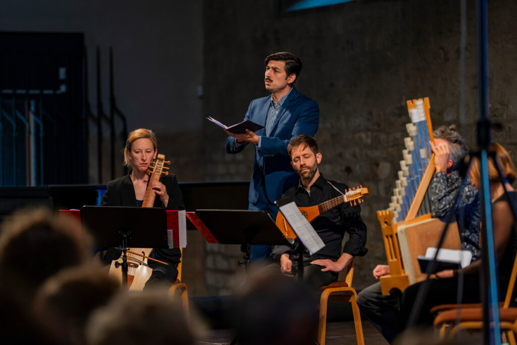 Sollazzo Ensemble působí na evropské hudební scéně od roku 2014, kdy jej založila fidulistka z ruské hudební rodiny Anna Danilevskaia. Ansámbl se specializuje na hudbu z přelomu středověku a renesance a nemá stálé obsazení. Podobně jako většina takto organizovaných těles má databázi vhodných zpěváků a instrumentalistů, z níž vybírá složení pro různé dramaturgické projekty. V Anežském klášteře tentokrát vystoupili australská sopranistka Roberta Diamond, argentinský tenorista Jonatan Alvarado, argentinský varhaník Roger Helou, německý loutnista Christoph Sommer a ve Francii žijící Anna Danilevskaia.