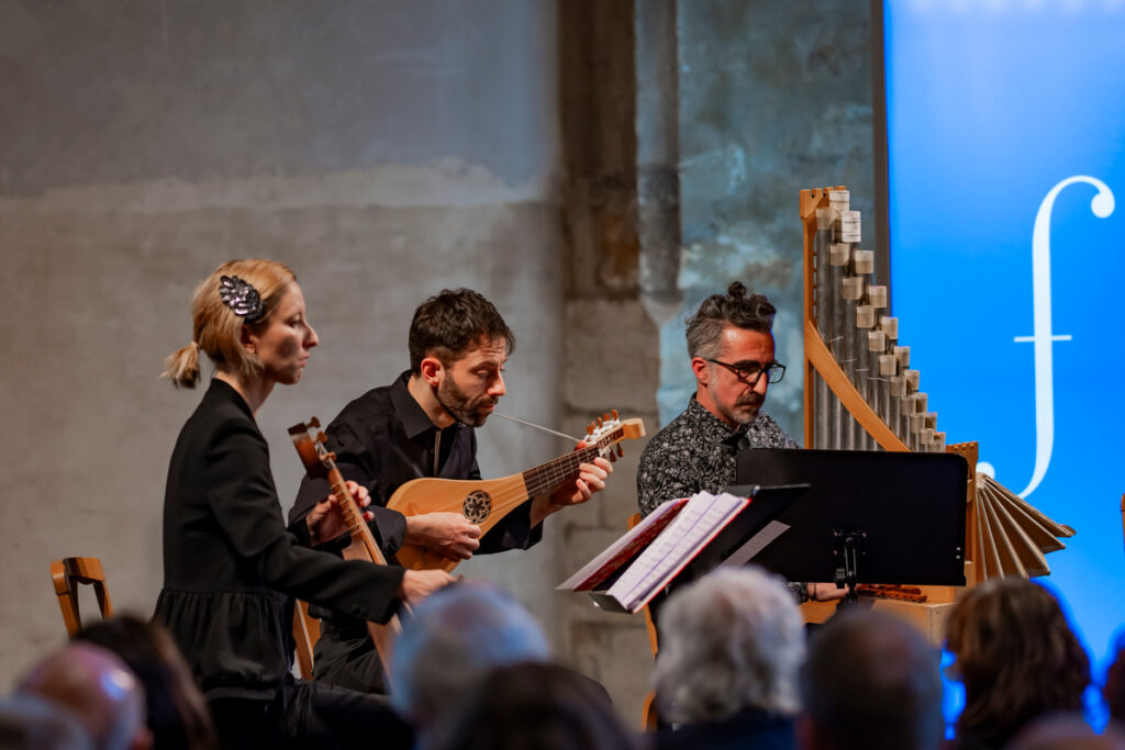 Za zmínku stojí také středověké instrumenty, se kterými se na koncertech lze setkat jen velmi vzácně. Především malé přenosné organetto, tedy varhánky, což je vlastně ve dvou svislých řadách píšťal konstruovaný varhanní rejstřík, který si sedící hráč postaví na levé stehno. Levou rukou ovládá sklopný měch, kterým zleva vhání do píšťal vzduch a pravou rukou hraje na maličkou klaviaturu, která je zprava připevněna podél spodní hrany píšťal. Středověká fidula patří mezi předchůdce houslí či viol a Anna Danilevskaia na ní hrála svisle, přičemž tělo nástroje držela mezi koleny. Loutna, na kterou hrál Christoph Sommer, se podobala malé kytaře, zavěšené poměrně vysoko pod krkem hráče.