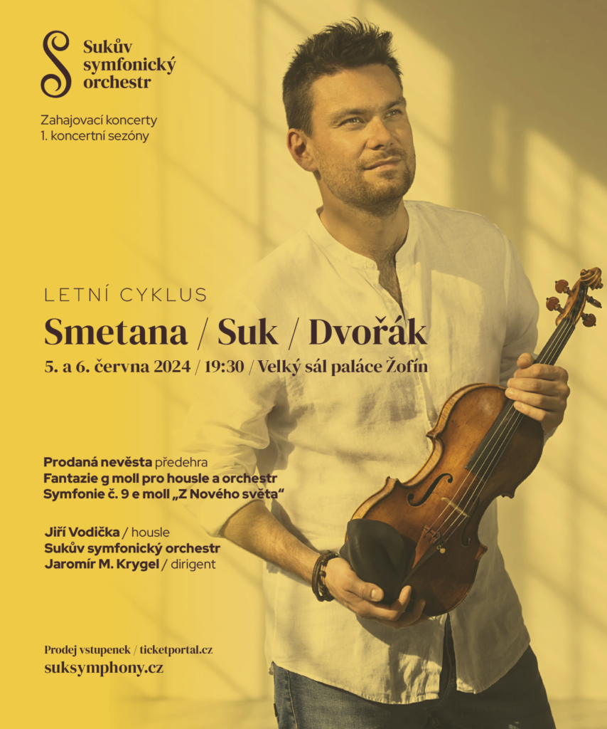 Na zahajovacích koncertech Sukova symfonického orchestru (koncerty Letního cyklu), které se uskuteční 5. a 6. června, zazní předehra k opeře Prodaná nevěsta Bedřicha Smetany, Fantazie pro housle a orchestr g moll Josefa Suka s koncertním mistrem České filharmonie Jiřím Vodičkou jako sólistou a světově proslulá Symfonie č. 9 e moll „Z nového světa“ Antonína Dvořáka, která právě v červnu 2024 oslaví 130 let od své evropské premiéry. Koncem září jsou následně v plánu v rámci dvou dní tři koncerty Podzimního cyklu v paláci Žofín, kdy pokaždé zazní Smetanova Má vlast, ve dvou případech také Dvořákova koncertní předehra Karneval.