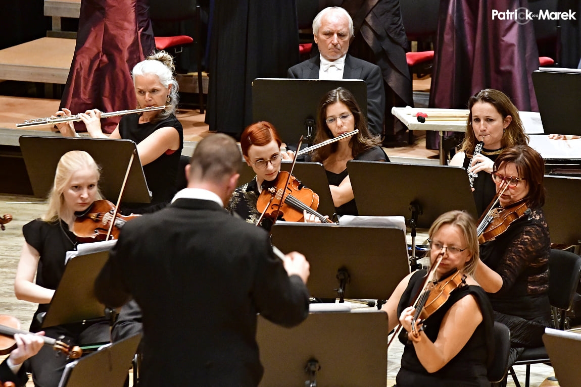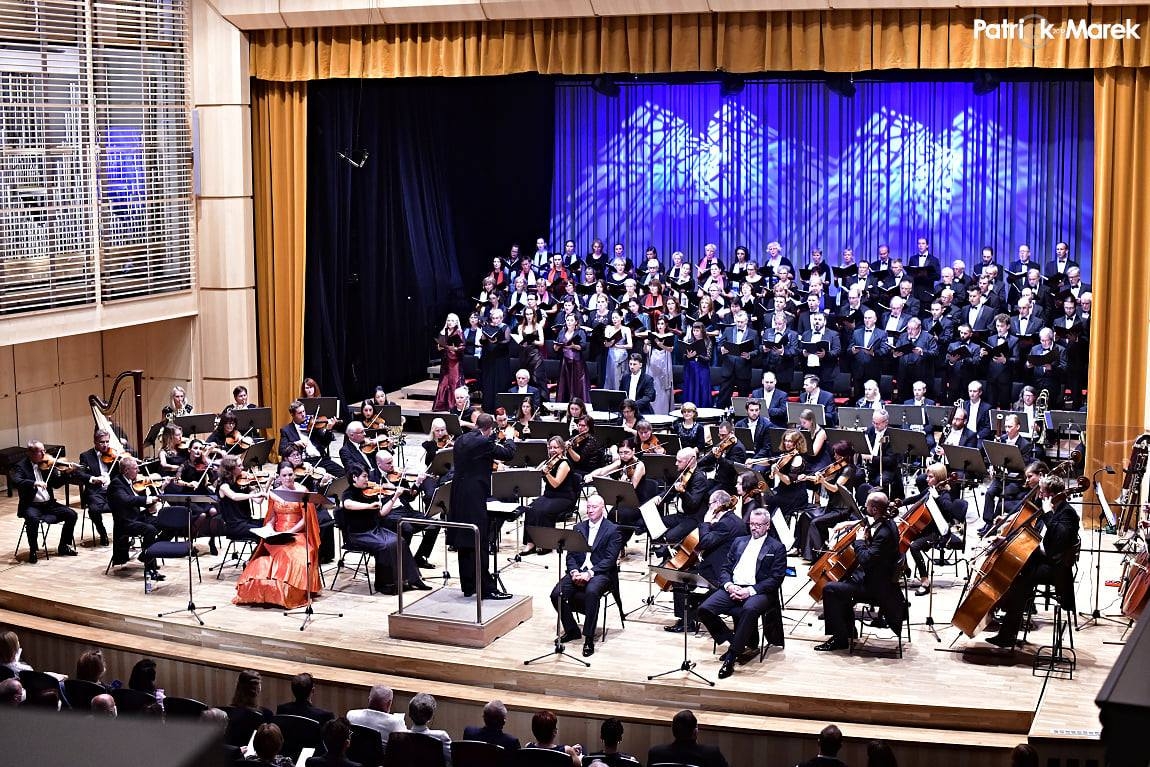 Všechna čest dirigentu Jiřímu Petrdlíkovi, který dokázal stmelit dvousetčlenný hudební aparát, a to po pouhé jediné, zároveň tedy generální zkoušce celého tělesa. Díky jedinečné variabilitě sálu hradecké filharmonie nevznikl ani prostorový problém s umístěním tří spojených sborů v zadní části pódia. Přes úvodní, trochu nesmělý vstup mužského sboru se pěvci rychle „osmělili“ a dokázali vytvořit jednolitý, dynamicky plastický zvuk. Dětský sbor, respektive s jedinou výjimkou sbor dívčí (sbor andělů), byl nápaditě umístěn na oba postranní balkony, což umocnilo i vizuální efekt.