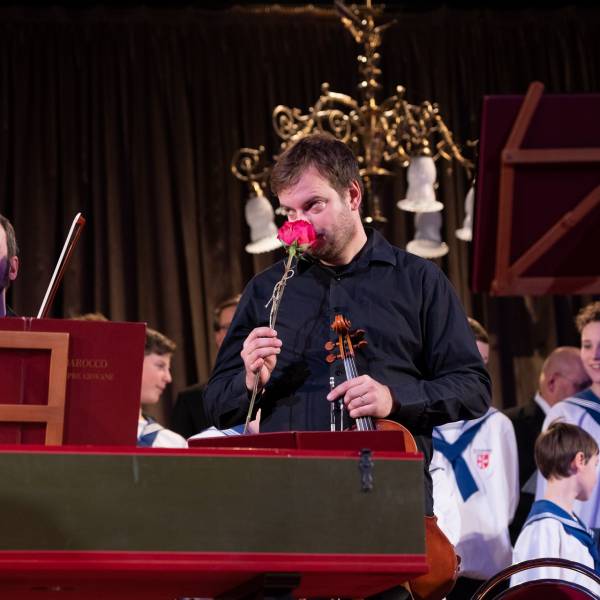 Soubor Barocco sempre giovane otevřel večer Pachelbelovým Canonem in D. Na festivalových koncertech Svátků hudby vždy promluví a zahraje i jejich patron, zakladatel a dobrá duše Václav Hudeček. Tentokrát po roztomile nehledaných slovech poděkování těm, kdo koncert podpořili, a představení těch, kdo účinkují, zvolil houslista Koncert F dur Jakuba Jana Ryby, kantora v Rožmitále pod Třemšínem. Narodil se 137 let po Rybově odchodu z tohoto světa ve stejném městě, a tak před svátky nemohla hudba autora České mše vánoční v programu symbolicky chybět. Houslový koncert, mile bezproblémový, odrážející svým stylem atmosféru klasicismu, ale jemně se vztahující i k předchozí a následující epoše, zazněl v pohodovém výraze a tempu.
