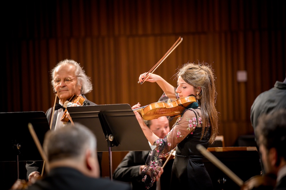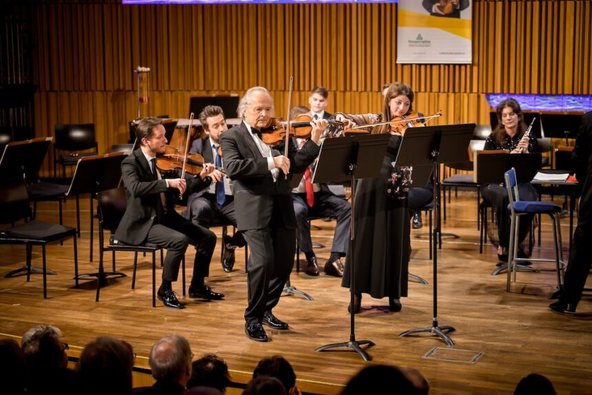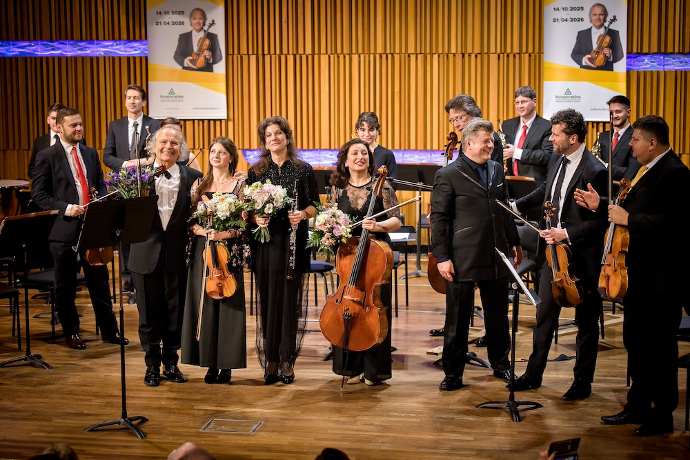 V Mozartově Concertone pro dvoje housle a orchestr C dur, KV 190 vystoupila spolu s Václavem Hudečkem absolventka jeho luhačovické Akademie Marie Baboráková. (Rozhovor s umělkyní čtěte ZDE.) V roce 2024 tam získala cenu Nadace Stadler-Trier. Ve vypracovaných duetech i v sólových kadencích byla Marie Baboráková noblesní partnerkou Hudečkova virtuózně vitálního pojetí. Svému mistru se vyrovnala v technicky brilantních pasážích, kouzelná byla souhra ve vedení smyčců. Občas ovšem k Hudečkovi v dynamice jako by vzhlížela, snad to bylo nástrojem, který zhotovila německá houslařka Julie Pasch. Ta tvoří v bývalém skladatelském domě Richarda Wagnera ve Vídni, podle dostupných informací by to měla být vila v Hadiggasse 72, kde skladatel dokončoval operu Mistři pěvci norimberští.