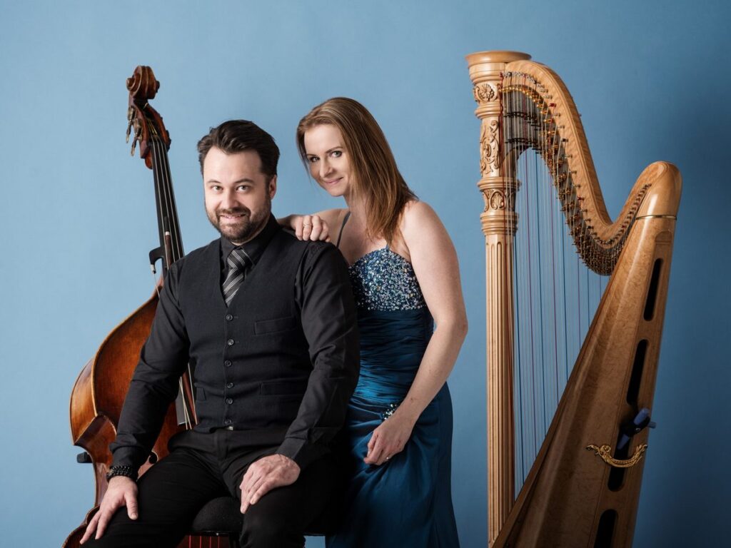 Ivana Švestková hru na harfu vystudovala na Janáčkově konzervatoři v Ostravě, na Pražské konzervatoři a na HAMU v Praze. Od roku 2008 je první harfistkou Filharmonie Brno, pravidelně také spolupracuje s Prague Philharmonia, je členkou Ostravské bandy. Se všemi třemi tělesy účinkovala i jako sólistka a v této roli vystoupila též například s Janáčkovou filharmonií Ostrava. Spolupracuje se soubory Baborak Ensemble či Česká Sinfonietta, vystupovala na všech ročnících festivalu Harfové dny v Ostravě. Vyučuje na Konzervatoři Brno. Marek Švestka vystudoval brněnskou konzervatoř a JAMU. Od roku 2006 je členem orchestru Městského divadla v Brně a roku 2011 se stal vedoucím skupiny kontrabasů Filharmonie Brno. Jako sólista vystoupil například s Filharmonií Brno, spolupracuje s českými komorními soubory jako PhilHarmonia Octet, Baborak Ensemble či Česká Sinfonietta. Od roku 2015 účinkuje v duu se svou manželkou, harfistkou Ivanou Švestkovou. Podrobnosti zde.