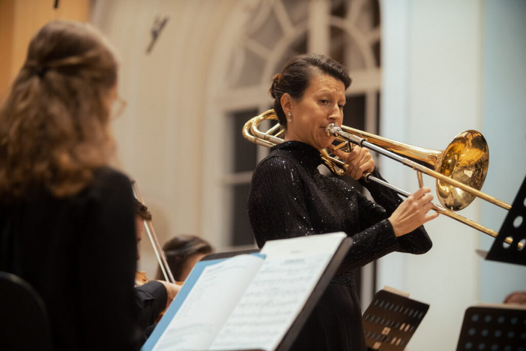 Sice s pomocí přestávkového odeznění, přesto vyžaduje určitou odvahu umístit svou juvenilní kompozici mezi díla největších českých klasiků. Po Dvořákovi a před Smetanou totiž zazněl opus studenta skladby Tomáše Borla (*1996), konkrétně Koncert pro trombon a orchestr. Borl se výrazně nechává inspirovat hudebním světem romantických skladatelů, a vlastně proto se Koncert v chodu večera vyjímal pěkně. Skladatelovou předností je z mého pohledu zjevně dobrý cit pro výstavbu formy – jak říkají skladatelé: „Drží to.“ Míněno, že dílo neztrácí tah, že nedochází k rozpadu formy, celé to funguje. Sólového partu se s nápadnou suverenitou a potřebným sebevědomím zhostila Veronika Lédlová (*1995) ve třídě Lukáše Moťky / Stanislava Penka. Myslím, že autor kusu k jejímu výkonu nemohl mít větších připomínek, což naznačila už vřelá odezva publika po dohrání.