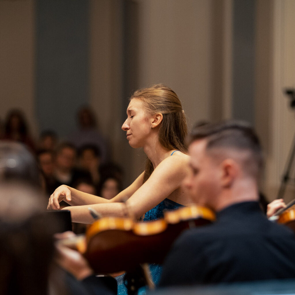 O Anně Gaálové (*1999), klavíristce, jež se (zpaměti!) chopila Dvořákova jediného klavírního koncertu, už jsme slyšeli nejednou. Bezesporu patří mezi elitní svěřence jednoho z nejznámějších českých klavíristů Iva Kahánka. Při produkci na sobě nedala znát známky nervozity, je vidět, že už „něco zažila“. (Věnovat úsměv komusi z příbuzných bezprostředně před započetím skladby už samo o sobě hovoří o tom, že tréma nejspíš není její „silnou stránkou“ – ve smyslu, že asi není typickou trémistkou.) Šestatřicetiminutovou kompozici jsme vyslechli jedním dechem, já osobně se přistihl jako přikovaný v pohledu na pianistčiny hbité prsty. Nezanedbatelně, umělkyně má dar naklonit si publikum pódiovým projevem plným něhy a pokory. A co se týče technické stránky hry, Gaálová neměla problém.