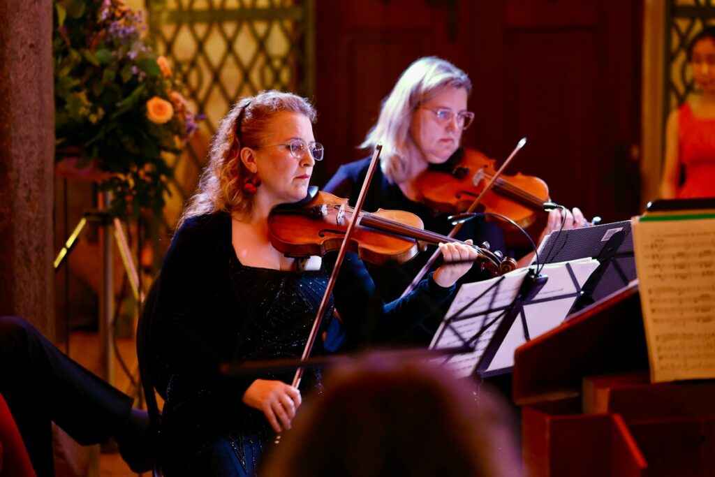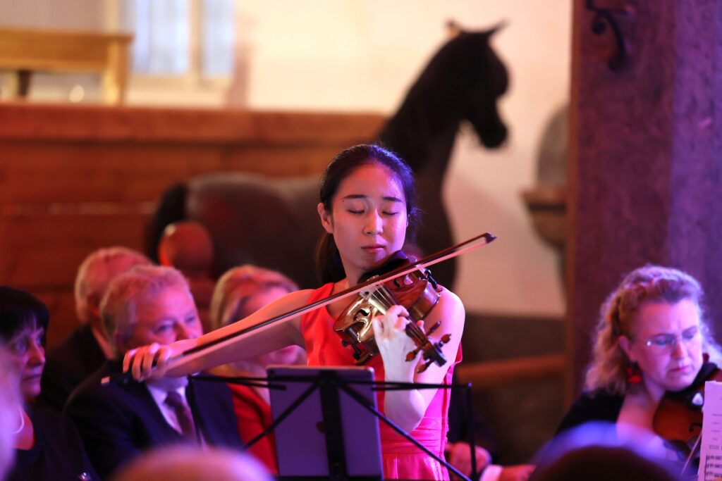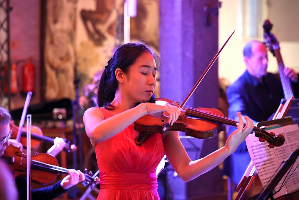 V Bachově koncertu se jako sólistka představila japonská houslistka Tsukushi Sasaki. Podobně jako celý soubor Atlantis Collegium také ona hraje na současný nástroj, respektuje však stylová specifika hudby Bachova období. Její podání Bacha bylo v krajních větách energické (Allegro, Allegro assai), druhá věta mající ráz ciaccony (Adagio), byla melodicky zpěvná, zdobená pouze střídmou ornamentikou. V příznivém akustickém prostředí zámecké konírny dobře vyzněl part průběžného basu, o nějž se podělili tři hráči.
