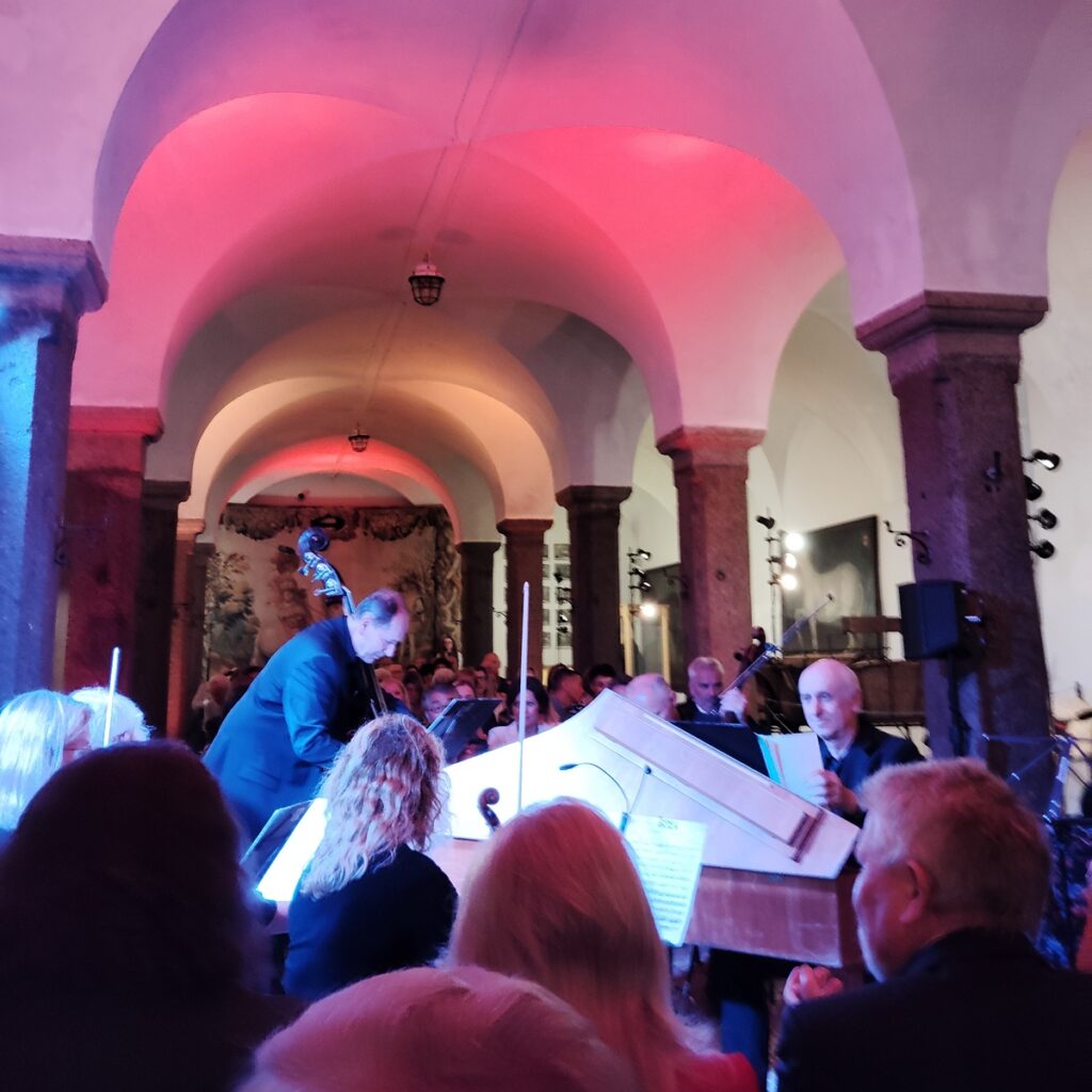 Dirigent Podrazil, řídící svůj komorní smyčcový soubor od cembala, ze suity vybral čtyři tempově a charakterově kontrastní části. Úvodní Předehra má jako u většiny Telemannových suit ráz francouzské ouvertury. Orchestr důsledným přetečkováním znázornil její slavnostní ráz, přesnou souhrou pak zaujal v navazující rychlé části. Následující Die spielenden Najaden (Dovádějící najády) se naopak pohybovaly ve středně rychlém tempu gavotty, s ní tempově kontrastovala čtvrtá část suity Der verliebte Neptunus (Zamilovaný Neptun), pro niž Telemann zvolil pomalý tanec v lichém metru loure pojmenovaný podle normanského typu dud. Posléze ho vystřídal Der schertzende Tritonus (Žertující Triton) coby šestá část suity. Telemannova obeznámenost se specifickým prostředím velkého přístavního města se nemohla neodrazit ani v této cyklické kompozici. Závěrem nás proto hudebníci mohli obšťastnit rychlým tancem canarie, jehož původ sahá až do 16. století, a to v části Die lustigen Bootsleute (Veselí lodníci). Zemitý charakter tomuto tanci v sudém metru (byl pojmenován podle exotických Kanárských ostrovů) obvykle dodává tleskání a podupy hudebníků, v prostředí zámecké konírny se soubor bez těchto doprovodných efektů obešel.