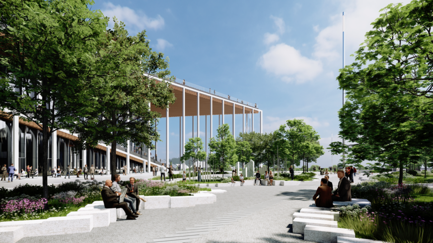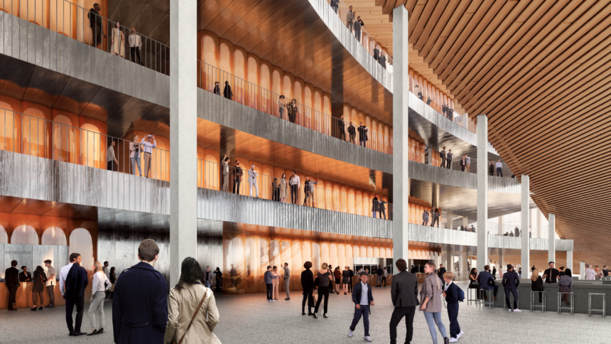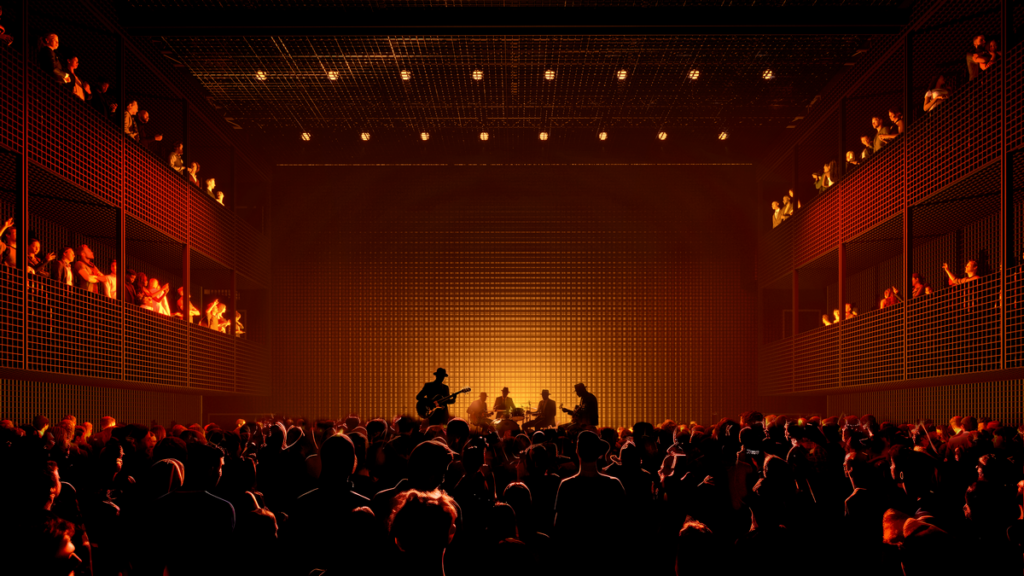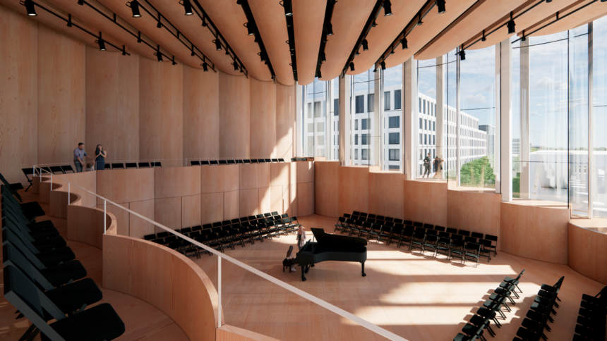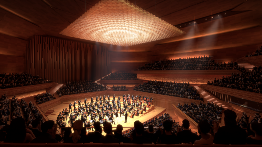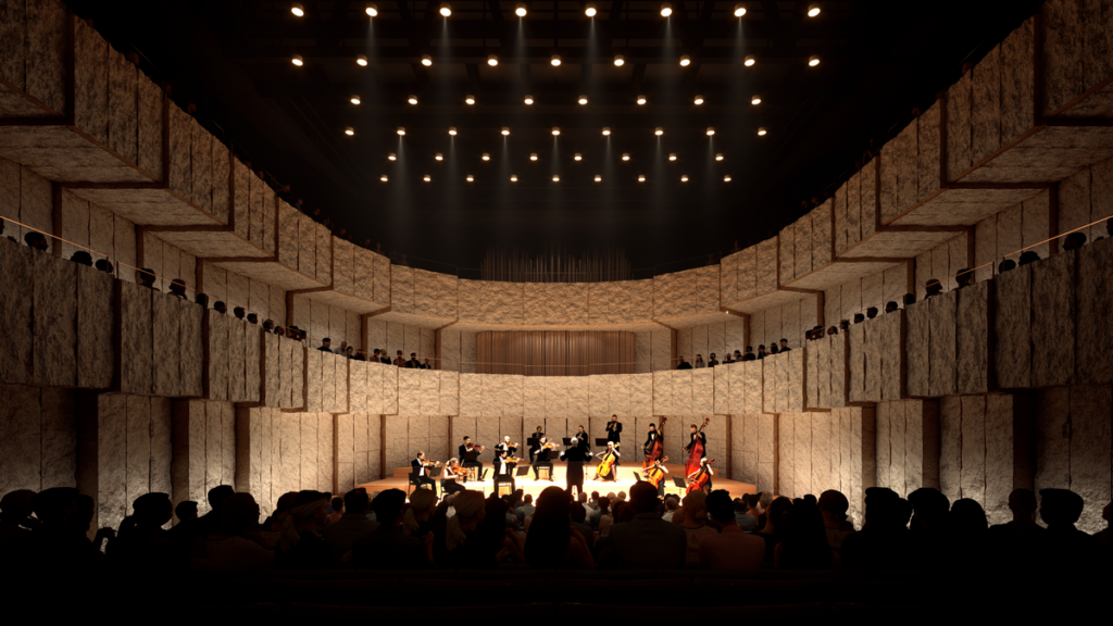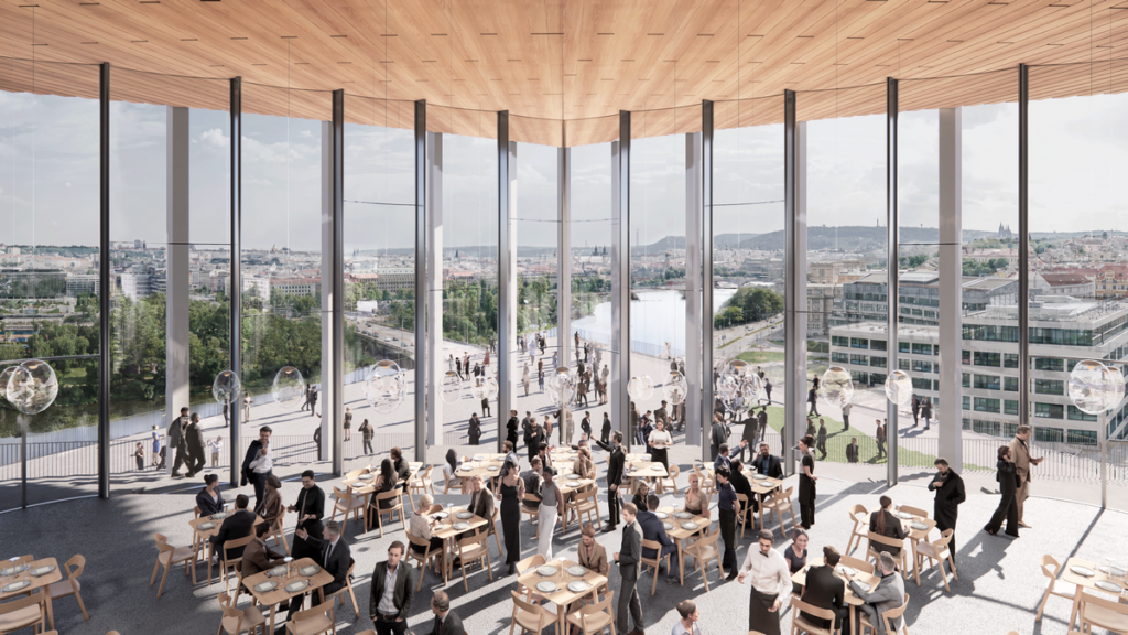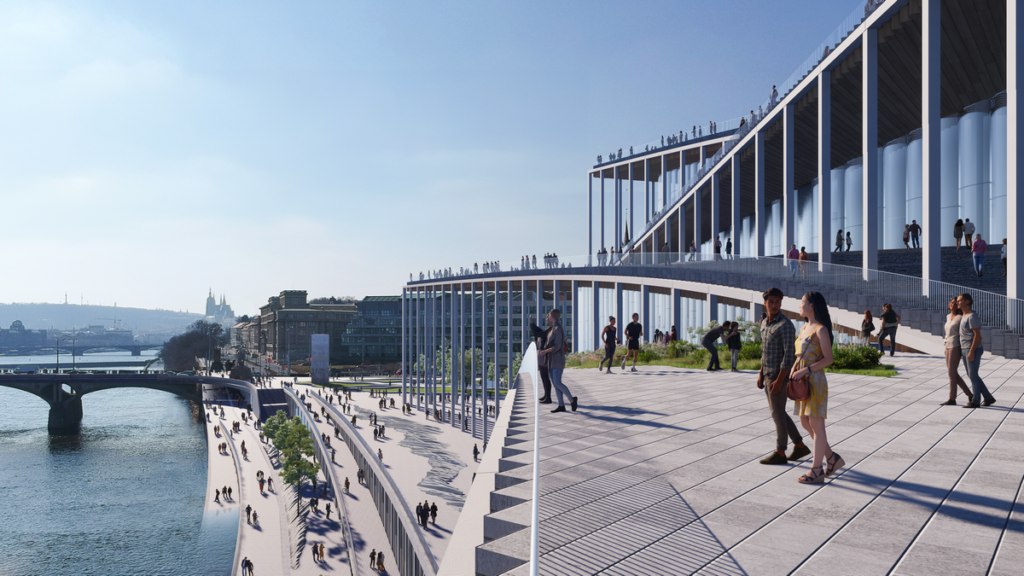 Svůdné vizualizace Vltavské filharmonie. Celý projekt je zhruba ve třetině