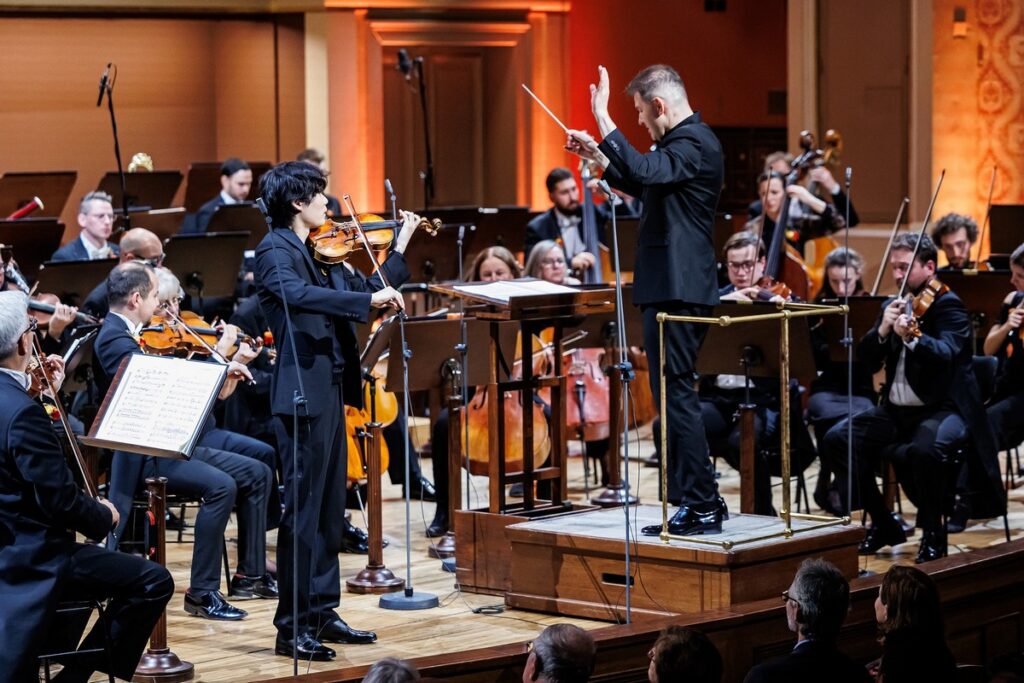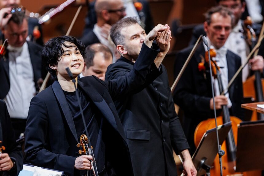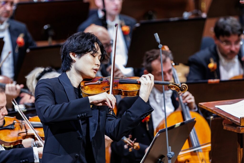 Následoval Druhý houslový koncert Sergeje Prokofjeva, kterému zcela vévodí sólový part houslí. Houslový koncert g moll je z roku 1935, tedy z doby, kdy autor komponoval svého baletního Romea a Julii a kdy se hodně vrací k romantické hudební řeči. To je nejnápadnější v pomalé druhé větě, která je vlastně jedinou doprovázenou melodií v několika variacích. První věta je komplikovanější, ale převládá zasněnost a neoklasická čistota hudebních linií. Dirigent orchestr hodně ztišil a nechal vyznít všechna drobná sóla dřevěných dechových nástrojů, aby měl sólista co nejvíce prostoru. Doprovod nebyl vždy zcela precizní, ale zůstal citlivý a prokreslený. Pokud jde o samotného jihokorejského houslistu Inmo Yanga, musíme ocenit technickou svrchovanost, ale chyběl kus nosného houslového tónu. Celý sólový part zněl poněkud zastřeně, což u některých pasáží působilo snivě a zajímavě, zejména v éterických výškách, jinde k plnému výrazu cosi chybělo, řekl bych plnější romantický zvuk. V umělcově životopise čteme v první větě o „zvuku plném poezie“ a s tím se dá souhlasit, na houslové koncerty je ale přece jen příliš introvertní. Jinak má Yang zajímavě nakročenou světovou kariéru a seznam orchestrů a dirigentů, se kterými už vystoupil, je zajímavý, takže se třeba ještě někdy vrátí a těšme se na něj.