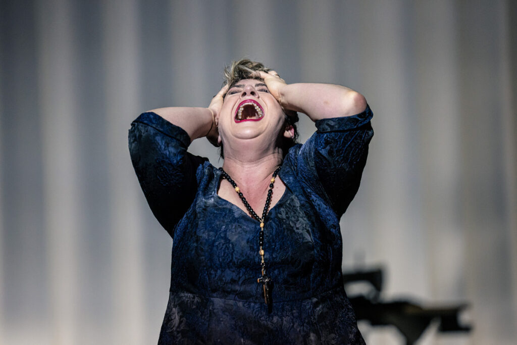 Dominující hlavní postavou je zde chtě nechtě nikoli Jenůfa, ale Kostelnička, a to díky tomu, jak ji ztvárňuje britská mezzosopranistka Rosie Aldridge. Roli už má zažitou z německých divadel, zpívá také Kabanichu v Kátě Kabanové a vedle starší klasiky se po Evropě objevuje rovněž v Brittenových, Šostakovičových a Stravinského operách i v soudobých dílech. S Bieitem má čerstvou zkušenost z jeho stuttgartské inscenace Wagnerova Parsifala. Pěvkyně s výkonným hlasem obdařila Kostelničku potřebnou vokální dramatičností i nepřehlédnutelnou přítomností na jevišti, k tomu řadou výkřiků a vzdechů navíc, které podpořily vrcholně expresivní okamžiky. Její čeština nemůže být stoprocentní, některá slova kvůli deformované výslovnosti pak ztrácejí ideální působivost, ale text i tak obsáhla obdivuhodně a bylo jí velmi dobře rozumět.