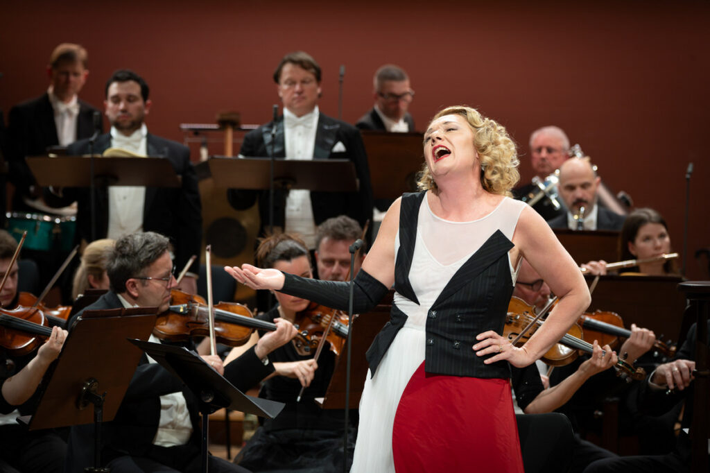 Česká filharmonie, sestoupivší z piedestalu vysokého umění symfonického tělesa do kabaretního světa, hrála v netradiční roli s jistotou a přesvědčivě. Simon Rattle dirigoval s inspirativním vcítěním do satirické mentality žánru. Dvojroli Anny zpívala Magdalena Kožená, která předloze a jejímu obrazu vtiskla výrazově odlišné hlasy. Aniž by cíleně vstupovala do žánru odlehčené múzy, suverénně zdobila zpěv otevřenými vokály proměnlivé intonace. Z pozice pragmatické a uvážlivé role tvořila výstižné recitativně nesené plochy i přesvědčivé mentorské momenty. Svůj hlas stále udržovala slyšitelný v proměnlivém dynamickém běhu orchestrálního zvuku, v sólech za tichého nástrojového doprovodu okouzlila i dravější sonoritou. Její mimika byla sice teatrálně úsporná, bez vyhraněných gest, ale srozumitelná s náležitou hodnotou výpovědi.