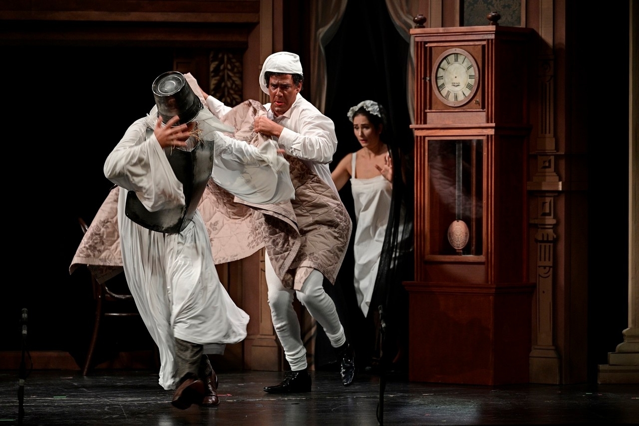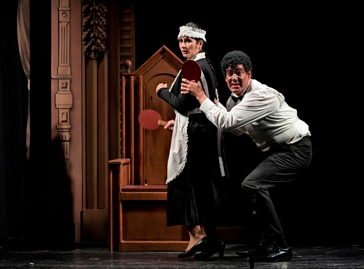 David Švec diriguje po celý večer s náruživou zasvěceností a strhává pěvce, stejně jako režisér, k vykročení z obvyklých klišé. Scéna Martina Černého s průchozími místnostmi zámku na točně je zábavná, jeho jízda vlakem do Satalic nevídaná. A nápady a gagy pocházející od Ondřeje Havelky těžko vůbec vypočítávat. Tak snad jen jeden – pingpongový míček v loutkohereckém pojetí.